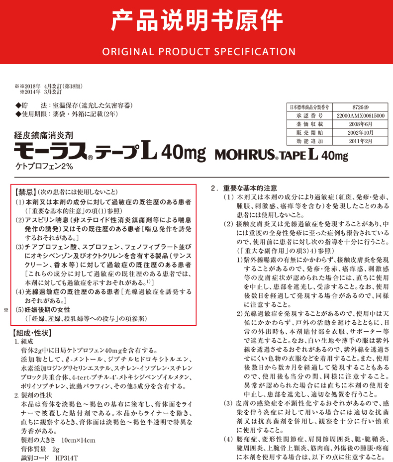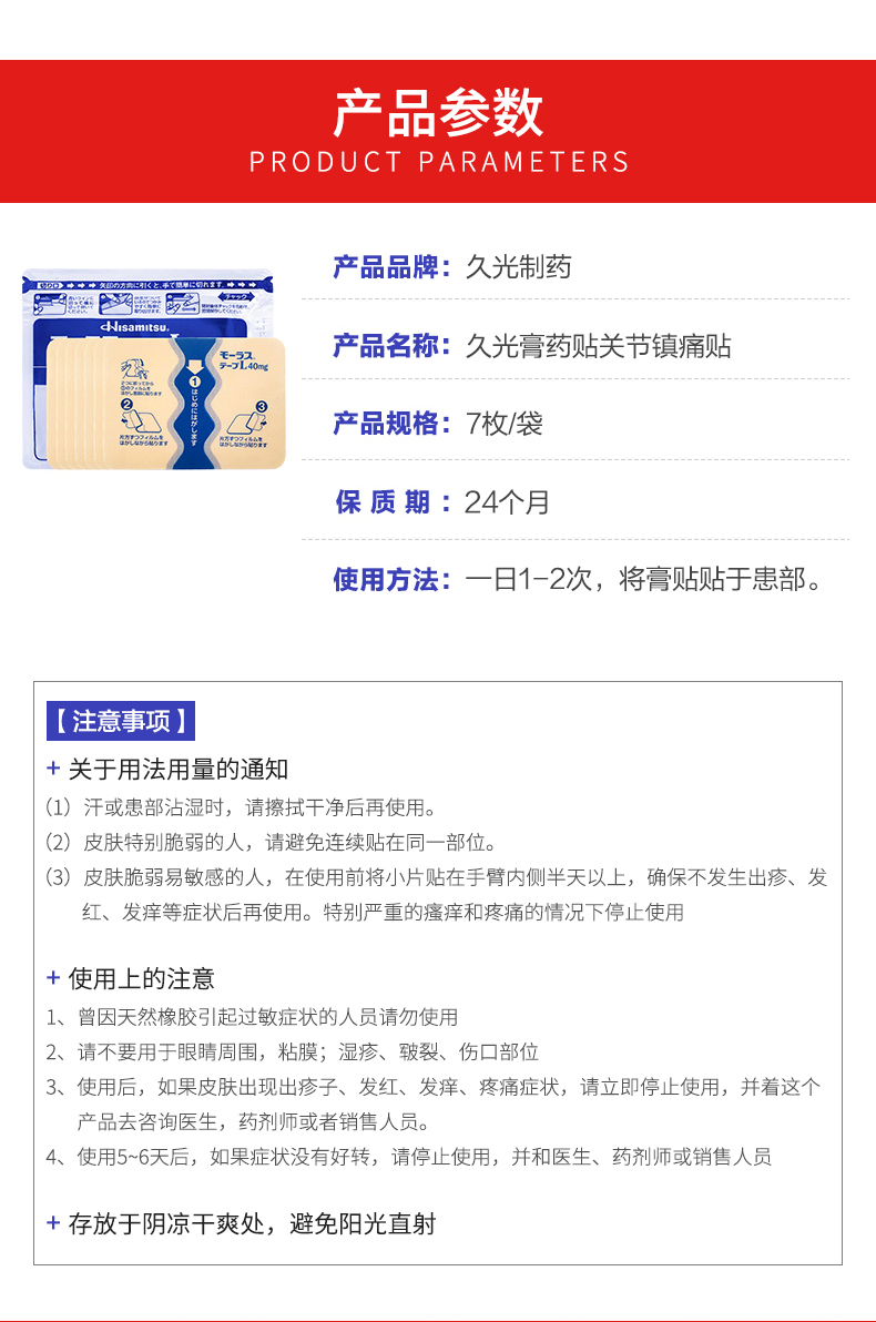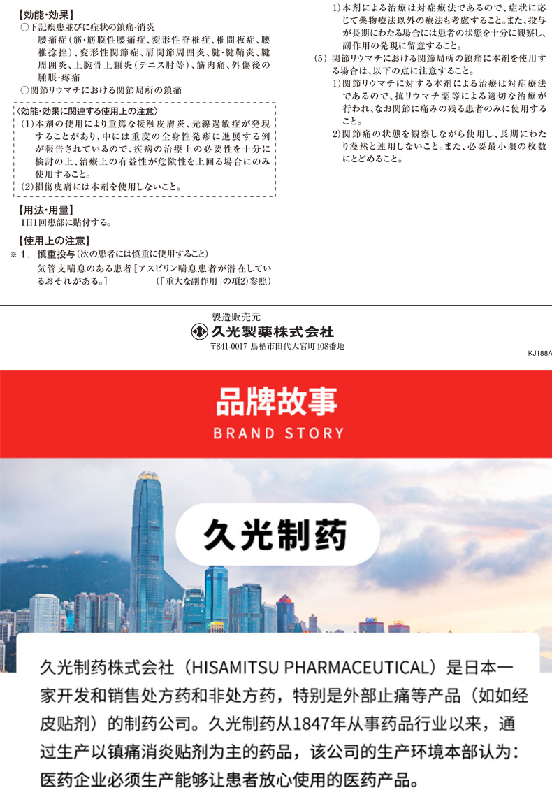 久光贴久光制药Hisamitsu膏药肌肉镇痛贴消炎止痛膏7枚/盒关节膏药贴