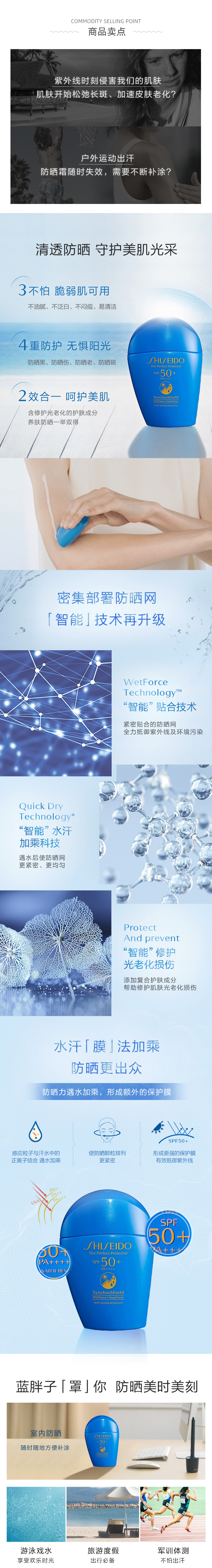 资生堂蓝胖子防晒霜150ml女面部防水防汗防紫外线清爽不油腻