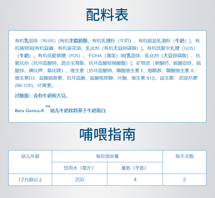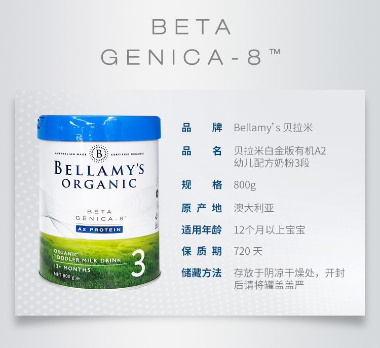 澳洲贝拉米白金版有机A2婴幼儿配方奶粉三段