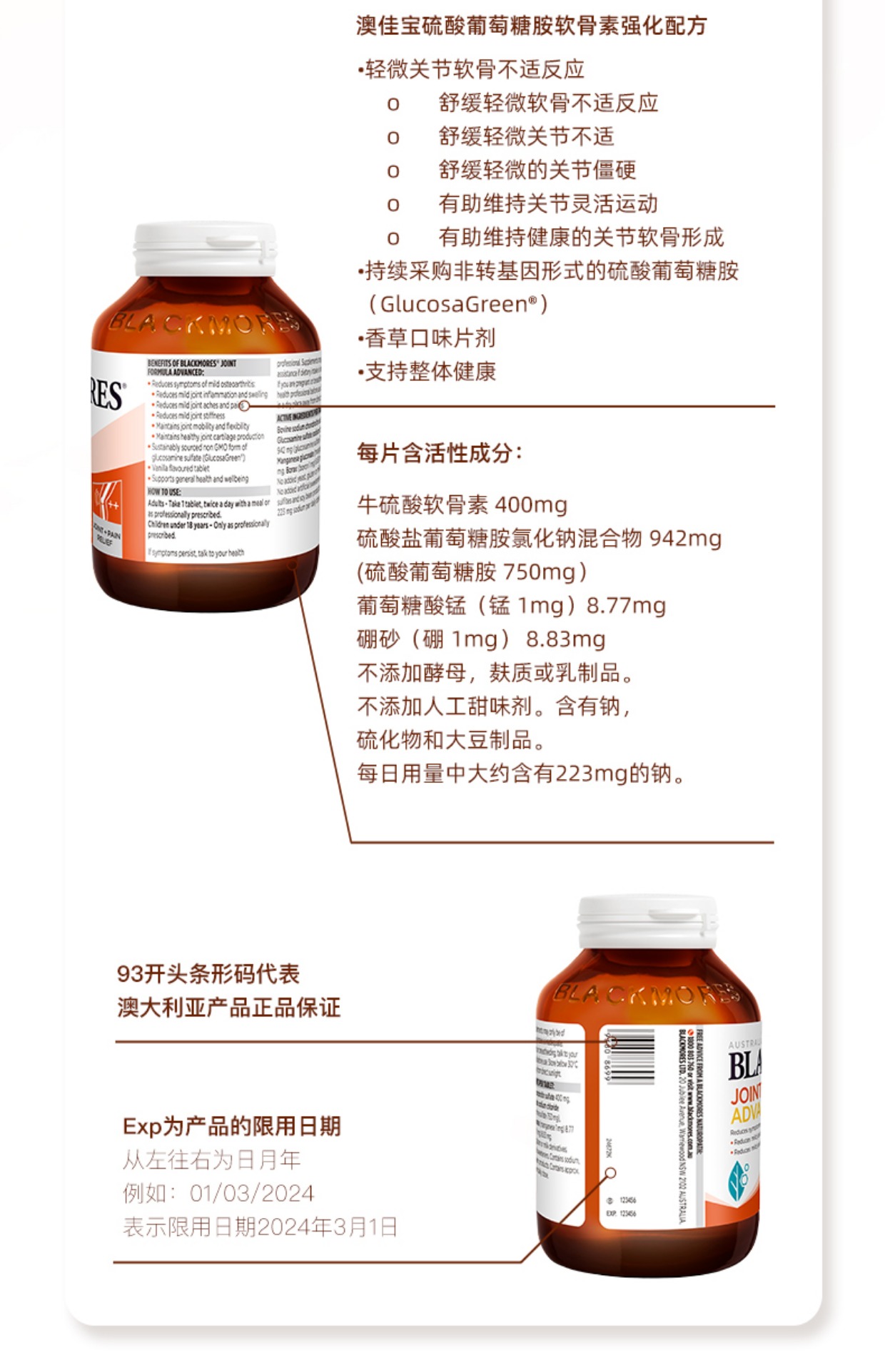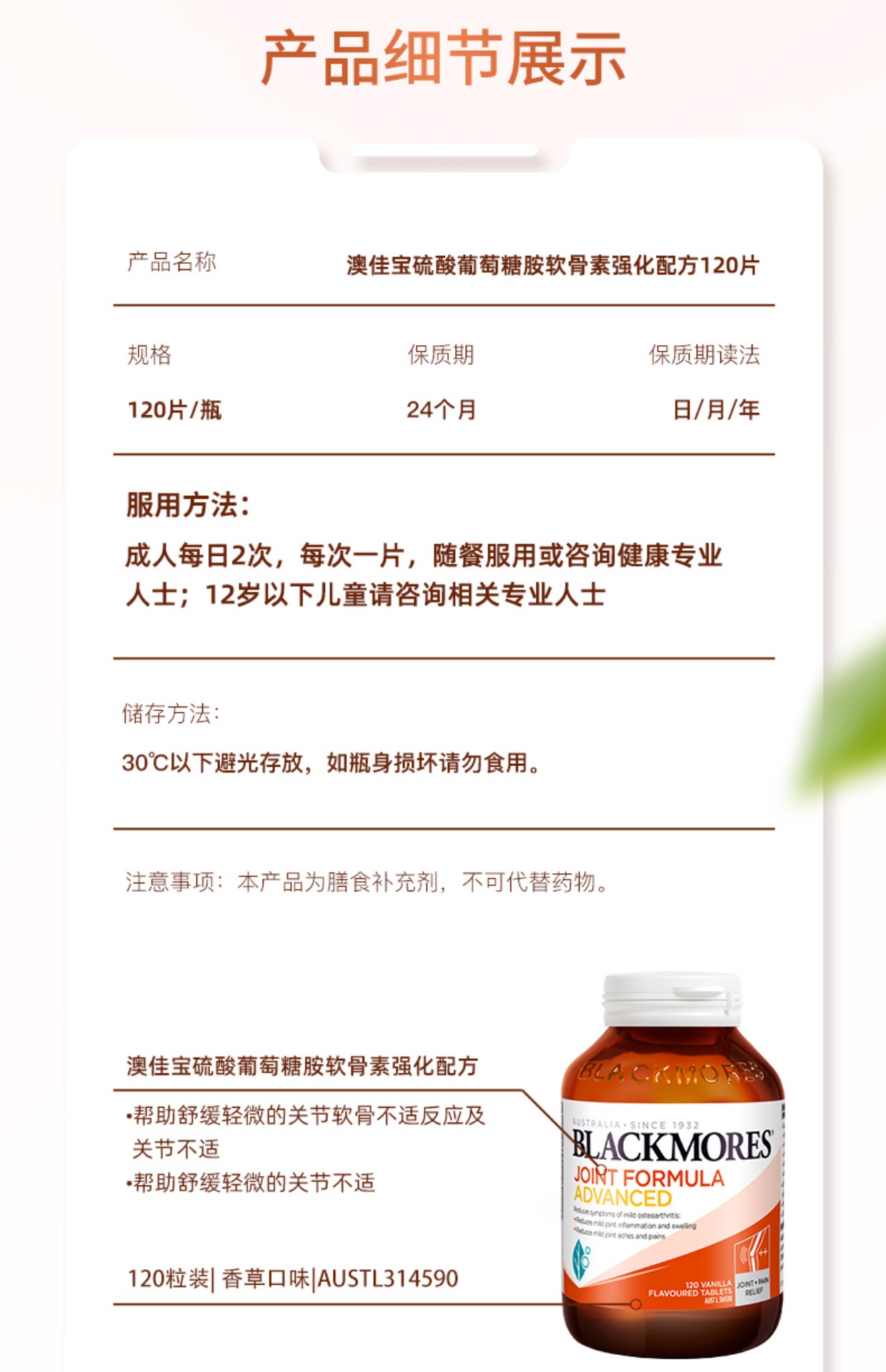 双十一特惠 blackmores 维骨力关节灵片 氨基葡萄糖软骨素180粒
