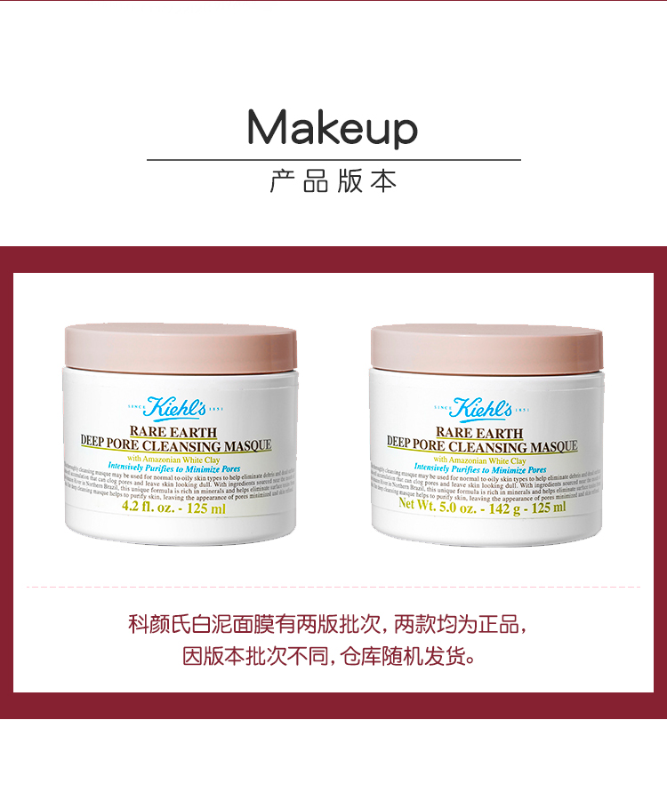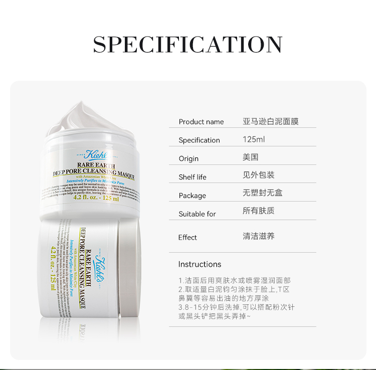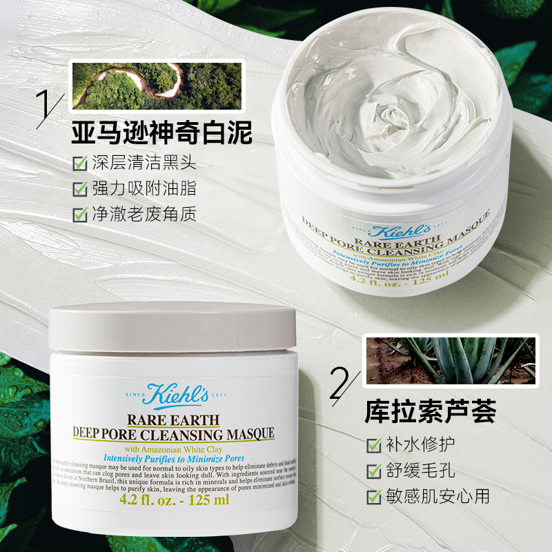 【限时特惠】科颜氏白泥面膜亚马逊深层清洁收缩毛孔黑头粉刺泥膜125ml