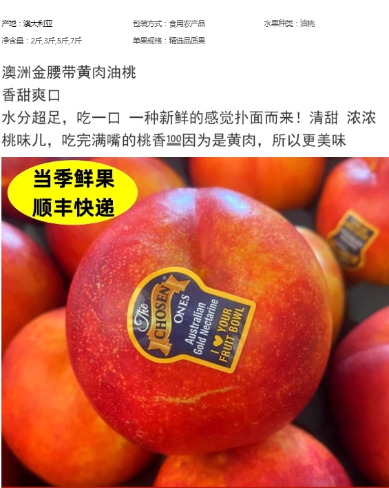 澳洲黄油桃3斤装 [ ¥0.00元]