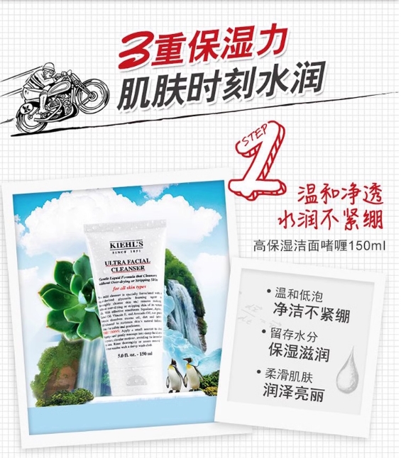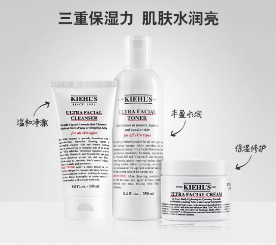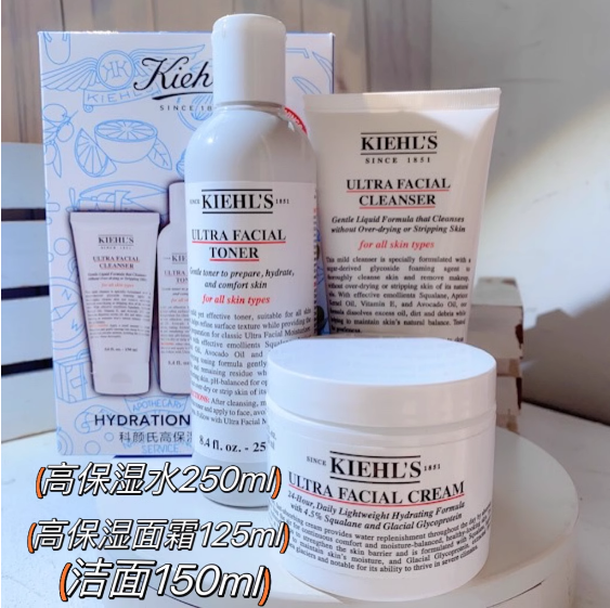KIEHL'S科颜氏 高保湿护肤3件套(洁面啫喱150ml+保湿水250ml+面霜125ml)