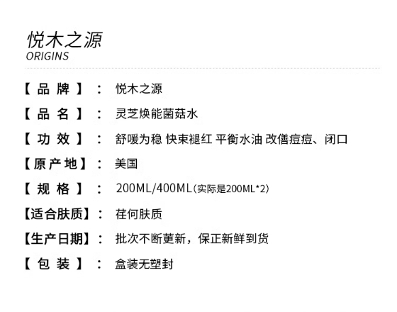 origins/悦木之源菌菇水400ml [加 ¥89.00元]