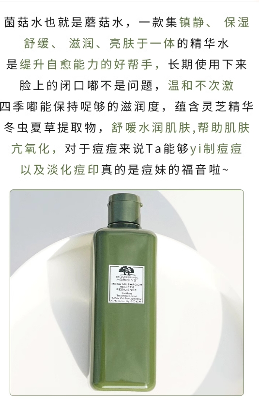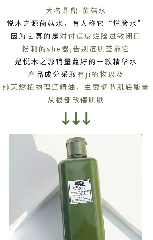 新版origins悦木之源菌菇水蘑菇水灵芝水焕能精华爽肤水200ML 27后