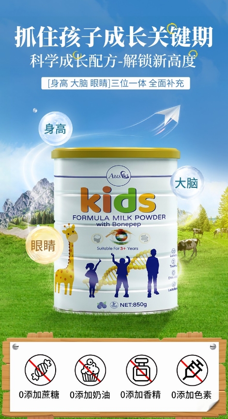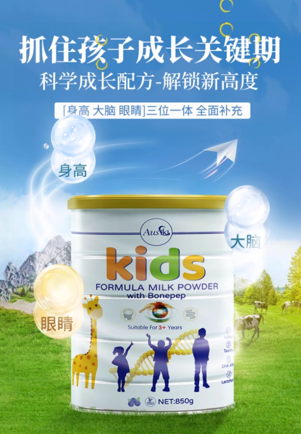 Ausiki澳爱优长颈鹿护眼益智长高儿童奶粉3-15岁850g/罐(新旧包装随机)