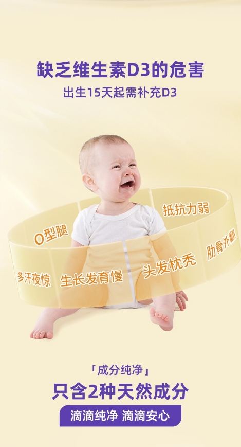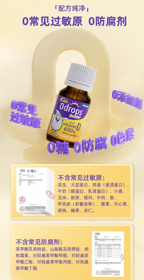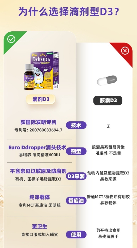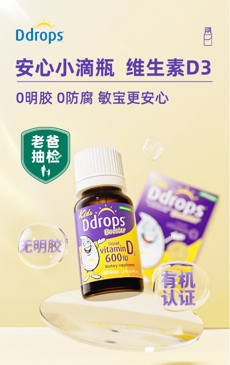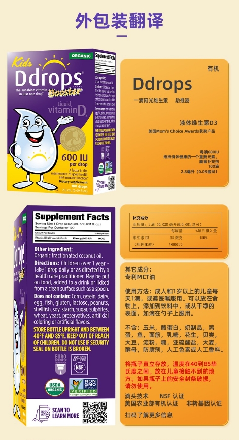 Ddrops紫色液体维生素D3滴剂 600IU 2.8ml 1岁以上