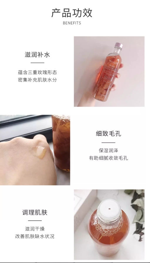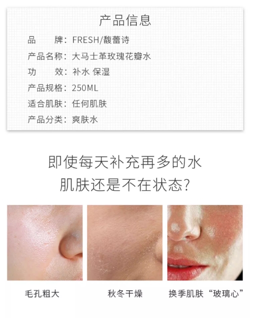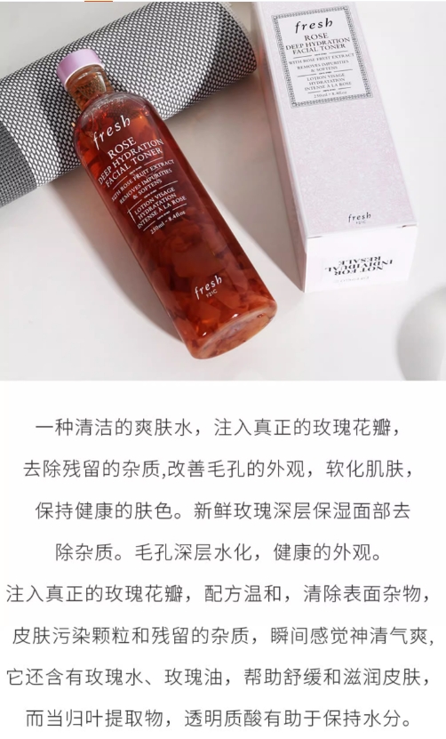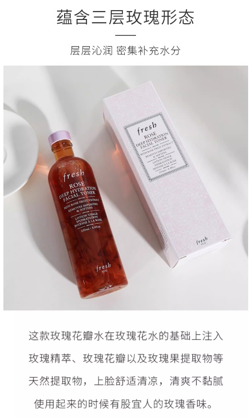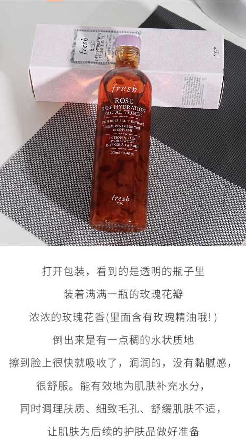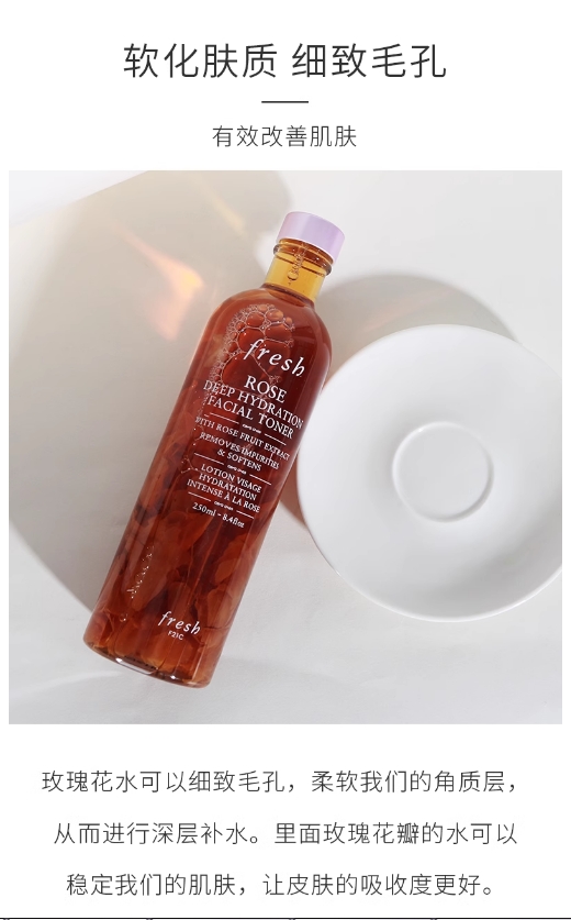 新版Fresh馥蕾诗玫瑰花瓣爽肤水250ml深层补水舒缓润泽柔肤