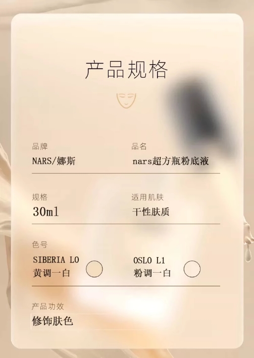 nars超方瓶流光美肌粉底液L1 [ ¥0.00元]