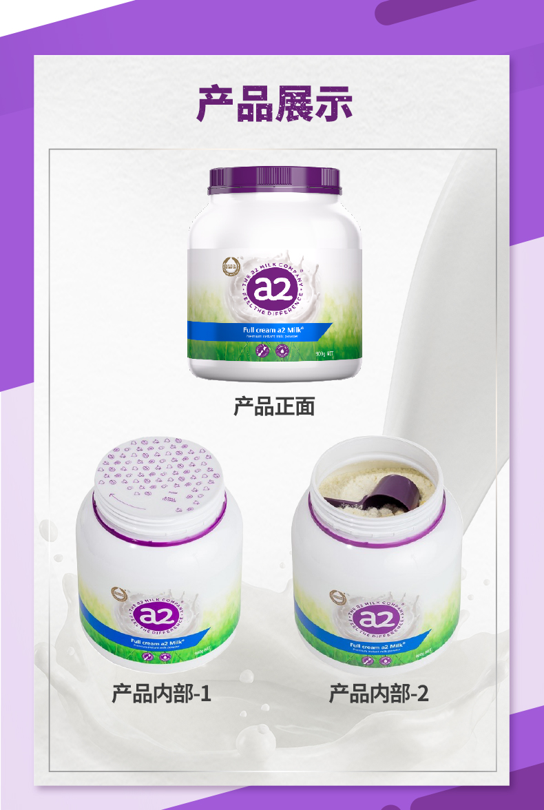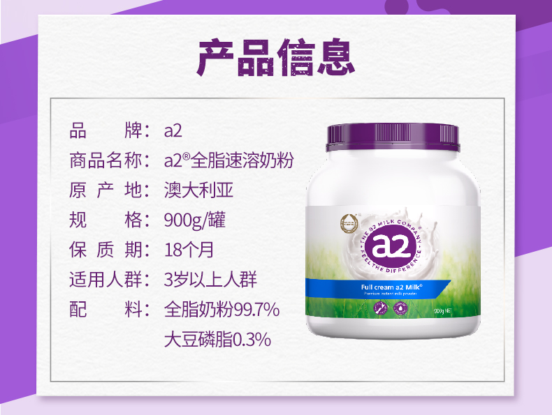 澳洲A2 紫吨吨高钙全脂奶粉 900g/罐