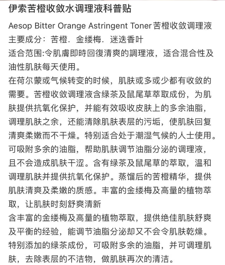 Aesop 伊索 苦橙收敛爽肤水 200ml [ ¥0.00元]