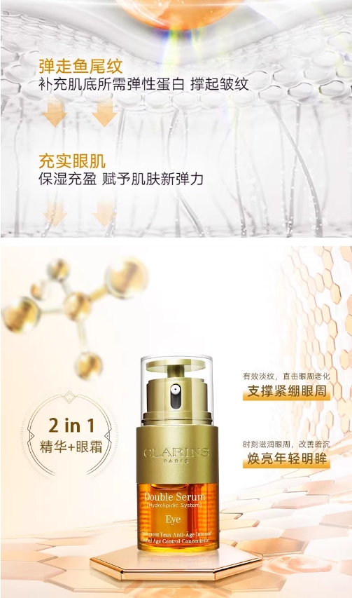 娇韵诗双萃眼霜焕活眼部精华液20ML保湿淡化细纹紧致二合一