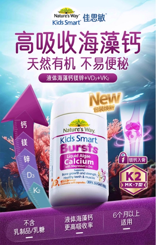 Nature'sWay佳思敏液体钙镁锌海藻爆浆丸30粒