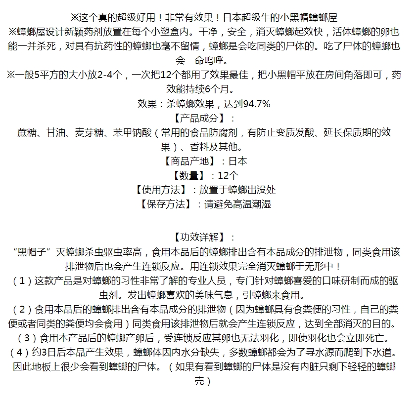 日本安素小黑帽蟑螂屋12枚 [ ¥0.00元]