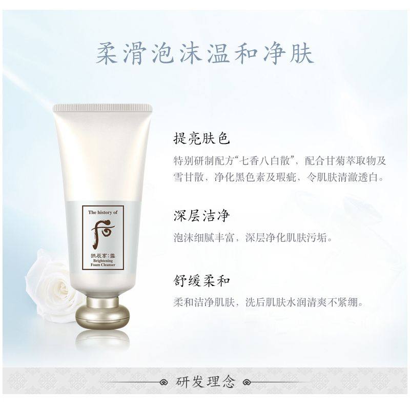 whoo后拱辰享美白焕白洗面奶深层清洁保湿温和提亮采柔润细腻