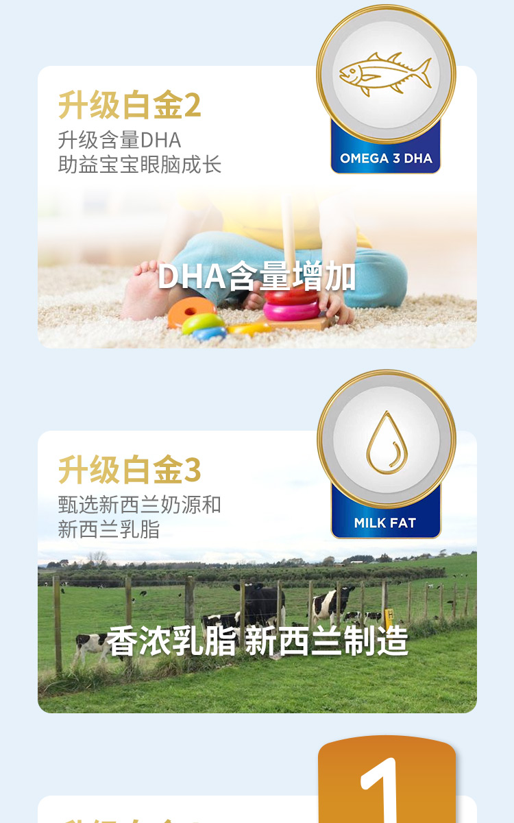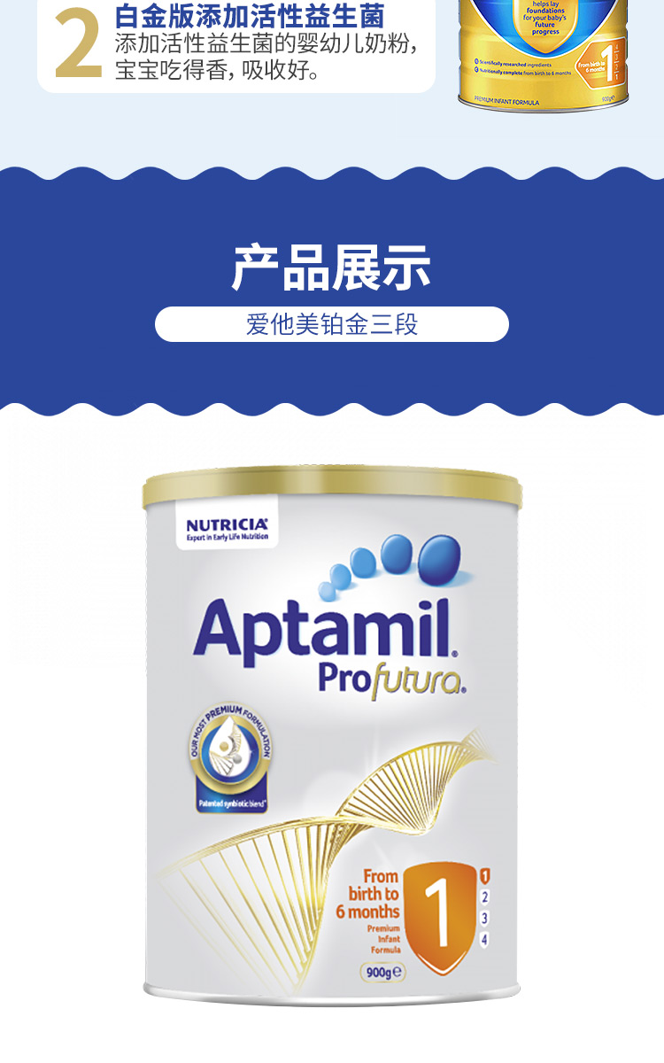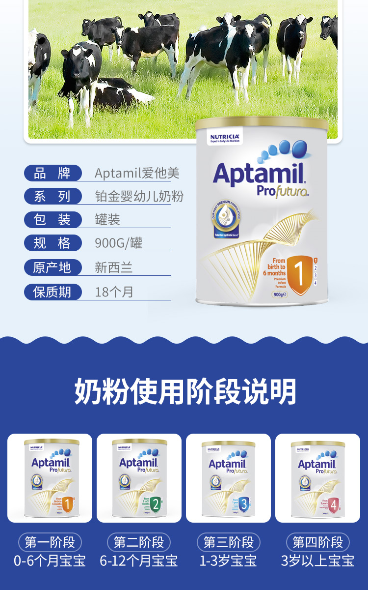 商品属性 [厂名] Aptamil [配料表] 乳清蛋白,omea3,叶黄素 [厂址] newzealand [厂家联系方式] 0800 688 742 [储藏方法] 存放在阴凉干燥处 [保质期] 550 [食品添加剂] 无 [包装方式] 包装 [重量(g)] 900 [品牌] aptamil/爱他美 [系列] 新西兰版 [规格] 900 [销售地] 新西兰 [适用年龄] 12个月 [包装种类] 罐装 [原产地] 新西兰 [生产日期] 2015年06月01日 至 2015年06月03日 [商品号] 9418783003407 [适用阶段] 一段