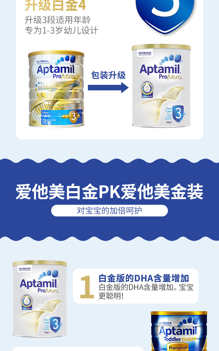 澳洲Aptamil爱他美铂金装二段 900g