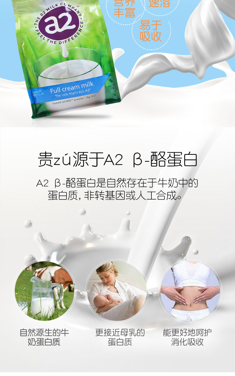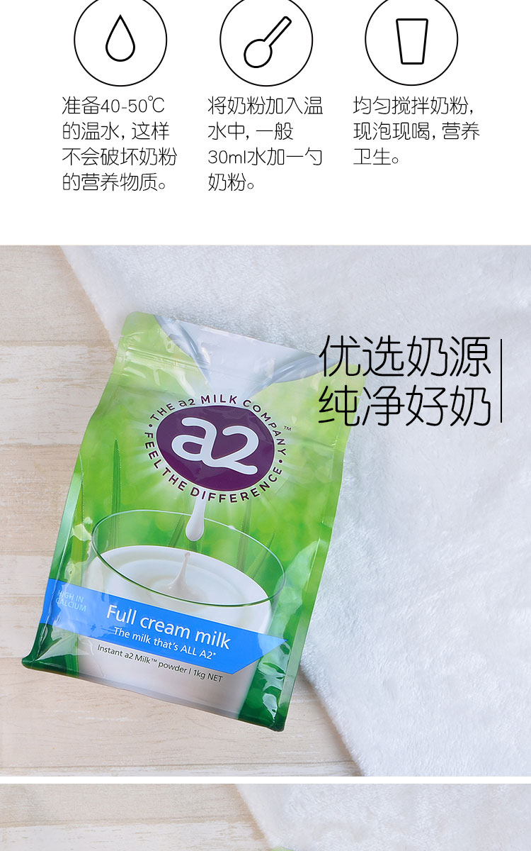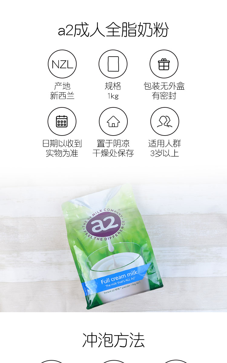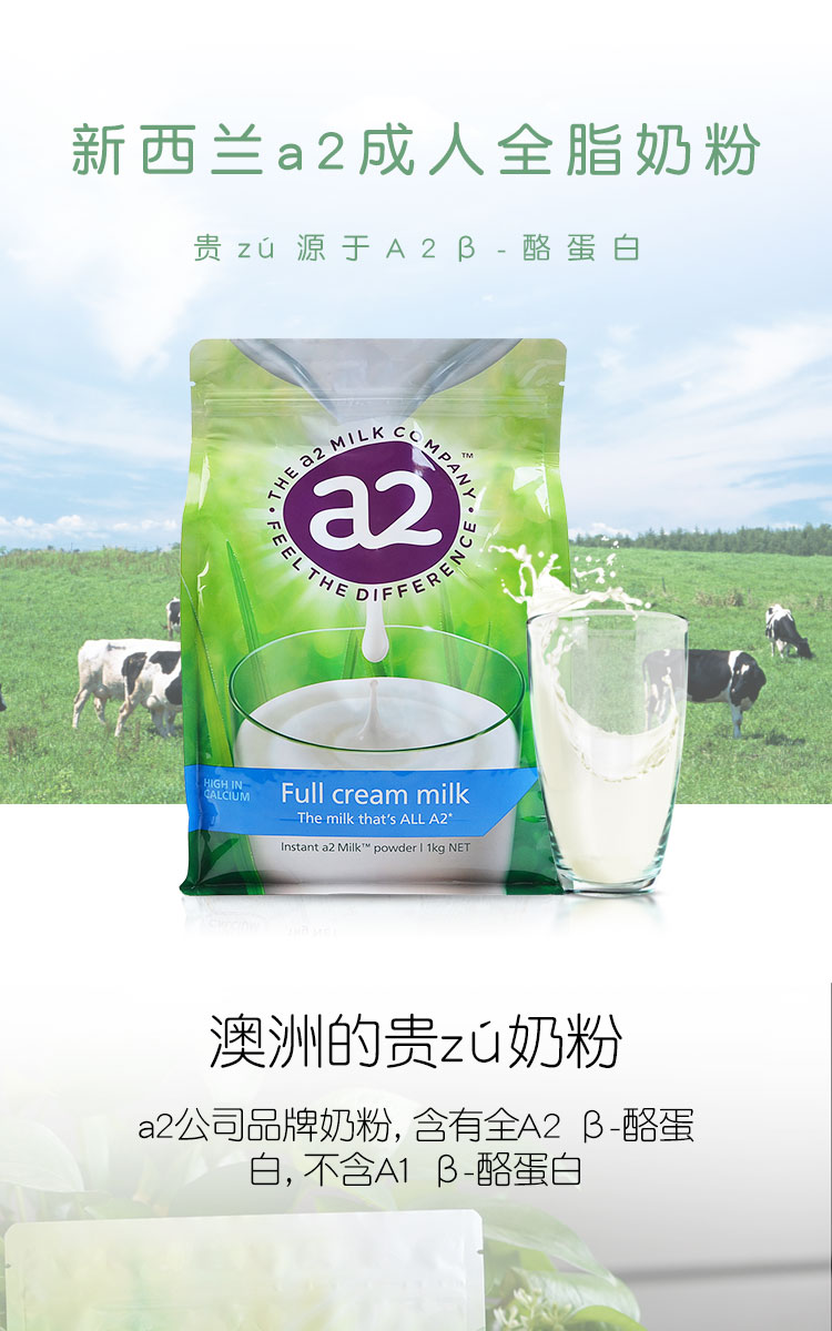 A2成人a2脱脂奶粉 1kg 6袋极速发货包直邮