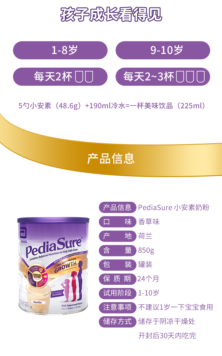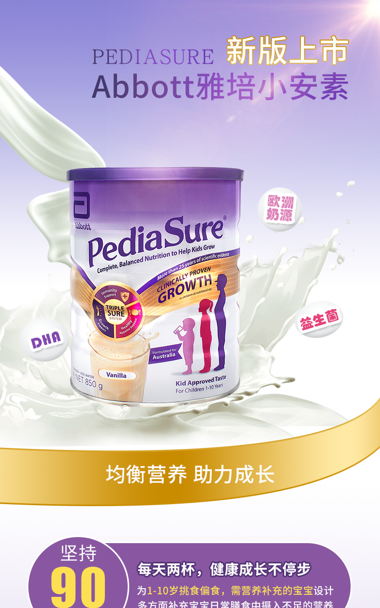 26.4雅培小安素婴幼儿儿童成长奶粉巧克力味 850g 6罐包直邮极速发货