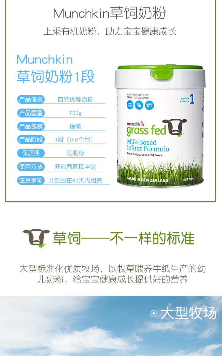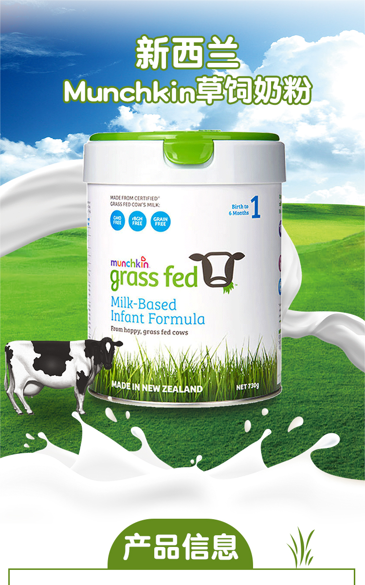 Munchkin满趣健草饲奶粉一段730g 6罐极速发货包直邮