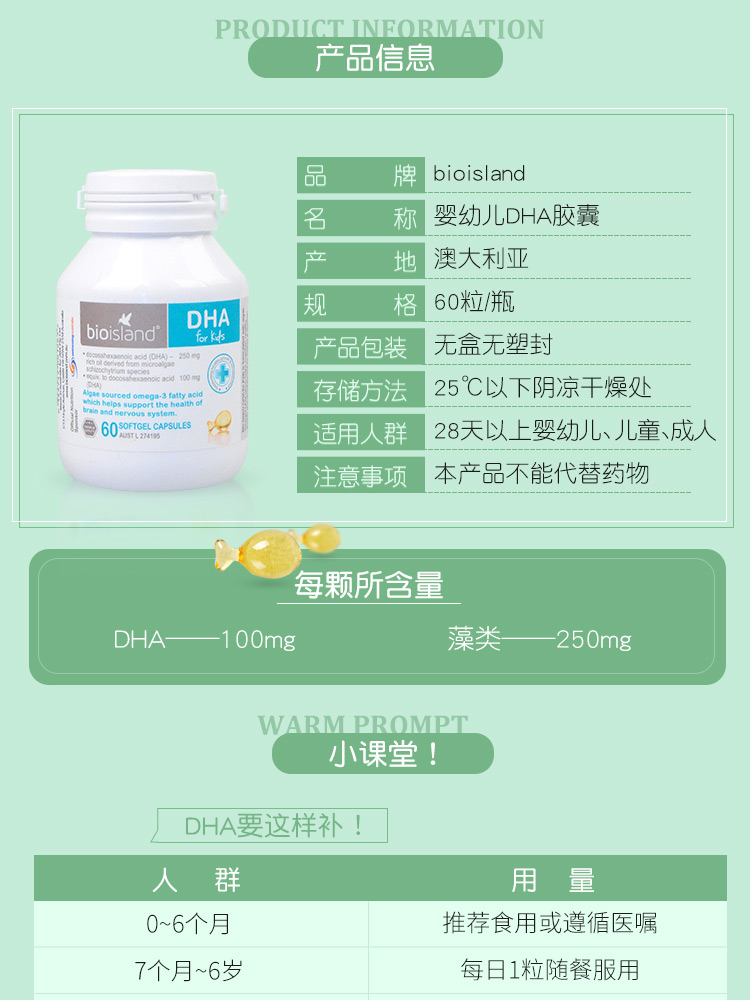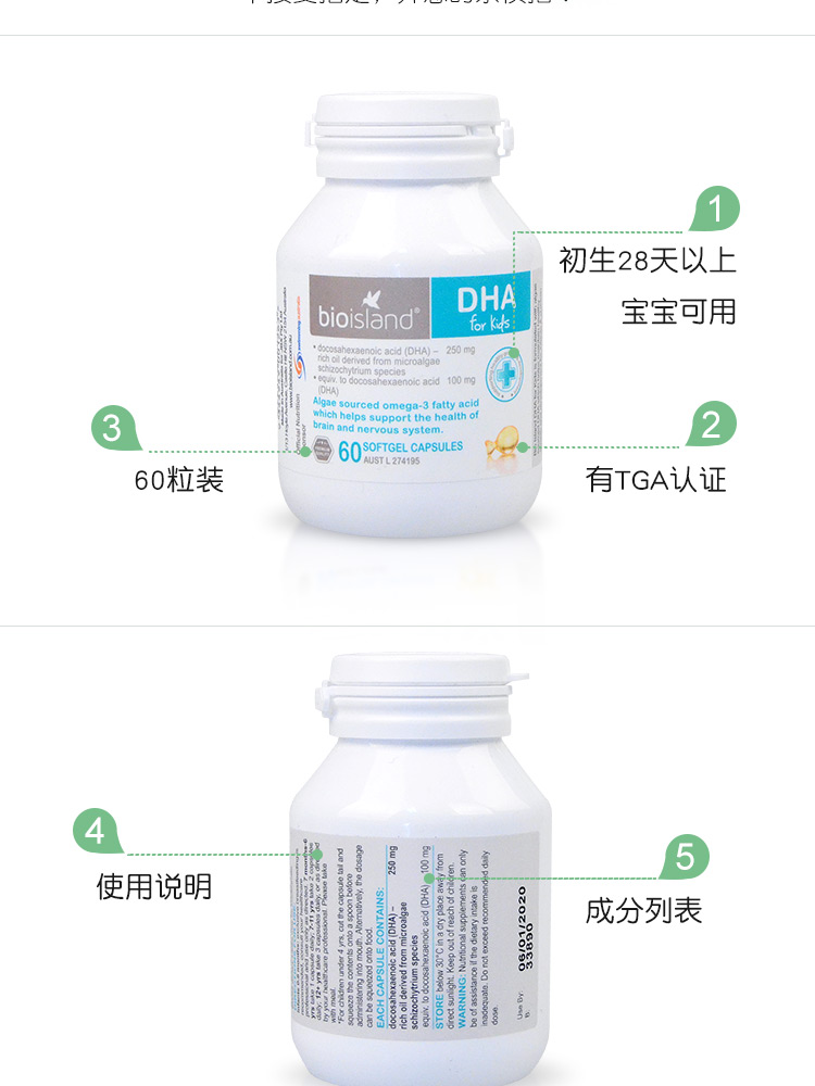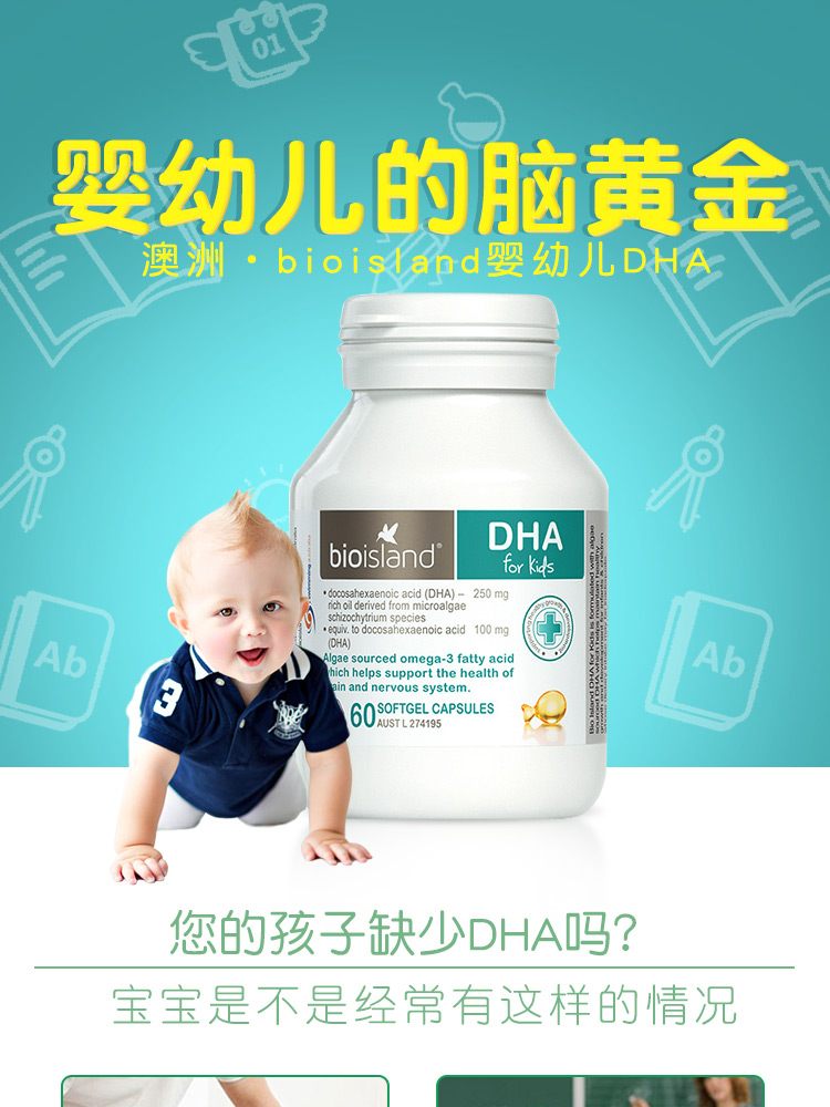 BioIsland鱼肝油+鱼油胶囊鳕鱼肝提取儿童宝宝专用 90粒