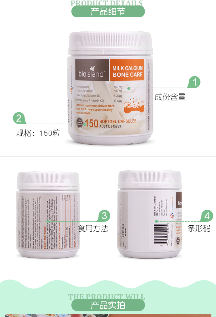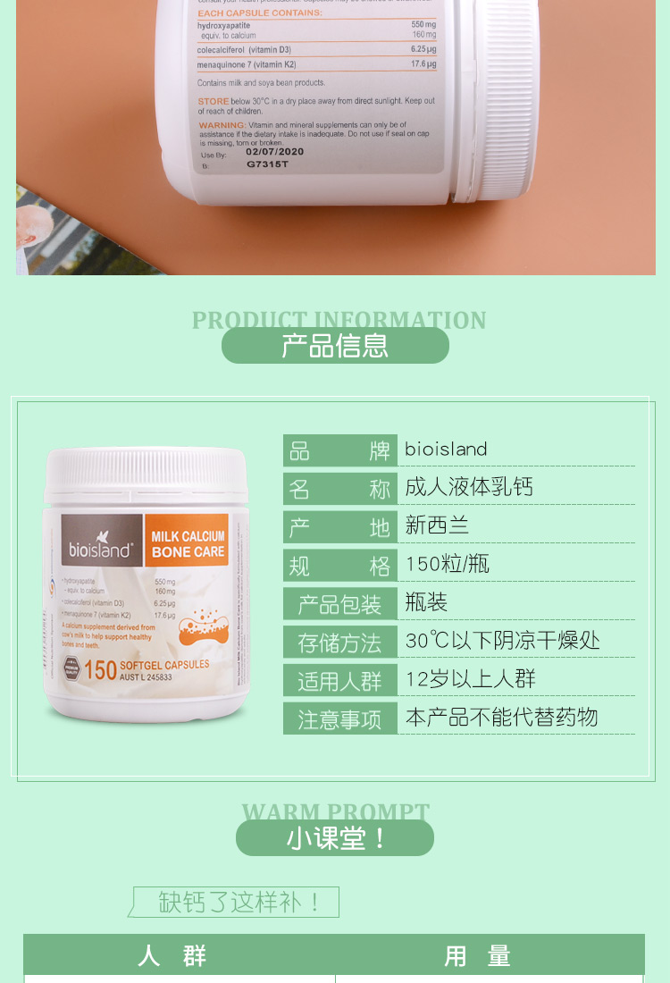 BioIsland婴幼儿液体乳钙软胶囊 90粒