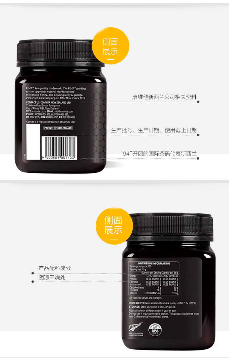 UMF20+ 新西兰comvita康维他天然野生麦卢卡蜂蜜 250g 新版