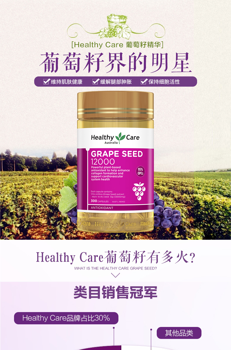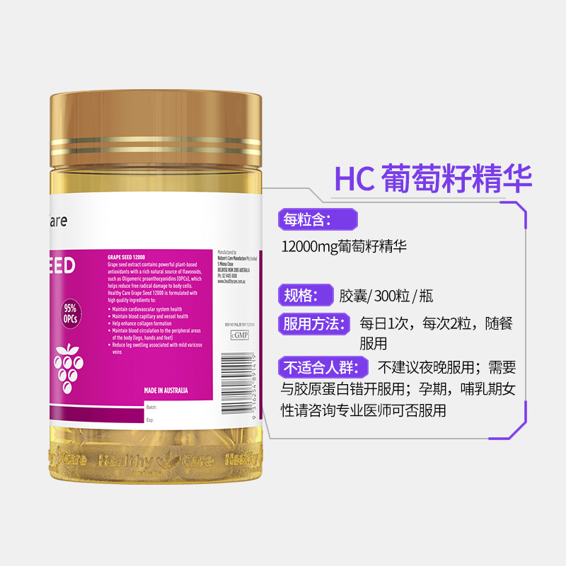 Healthy Care HC纯天然蜂胶软胶囊2000mg*200粒护肝延缓衰老