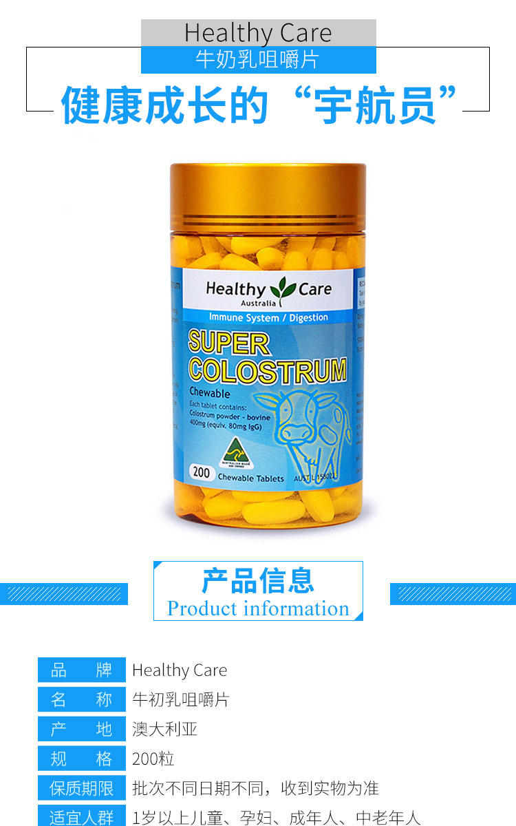 HealthyCare HC牛初乳粉 儿童成人改善免疫力术后恢复300g