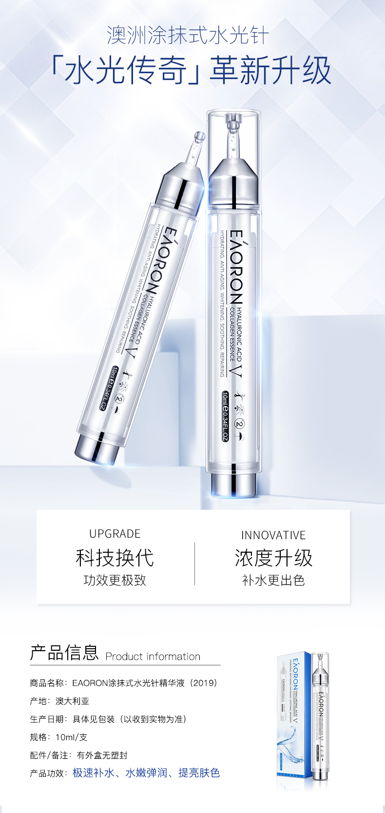 eaoron水光针黑白面膜一套 补水保湿嫩白提亮肤色收缩毛孔 玻尿酸黑白面膜 一套2盒