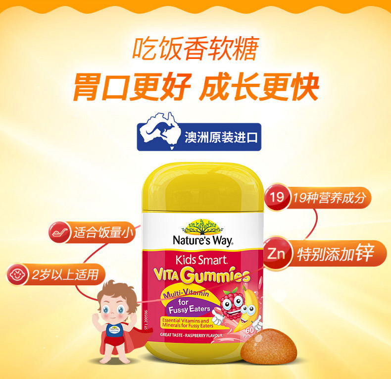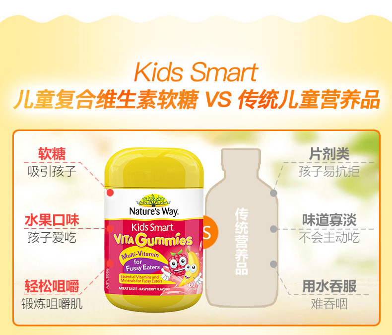 Nature's Way 佳思敏软糖 防挑食+多维生素 儿童复合维生素软糖果 60粒