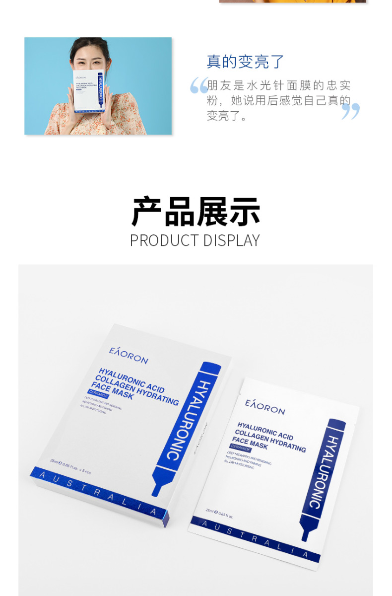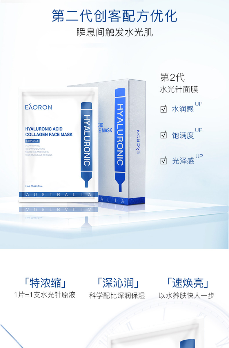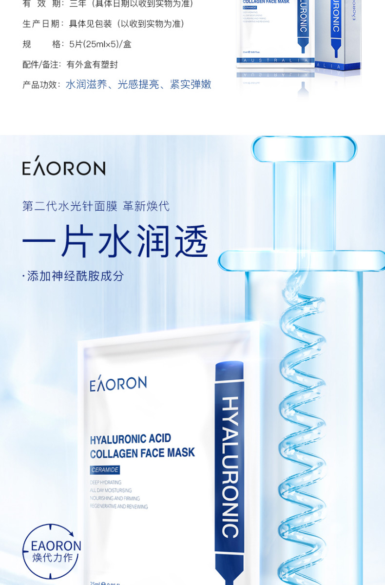 【限时特价】eaoron水光针黑面膜 补水保湿嫩白提亮肤色收缩毛孔 玻尿酸黑面膜一盒5片