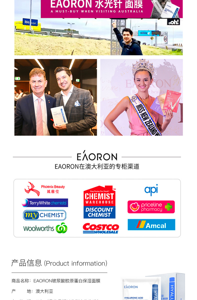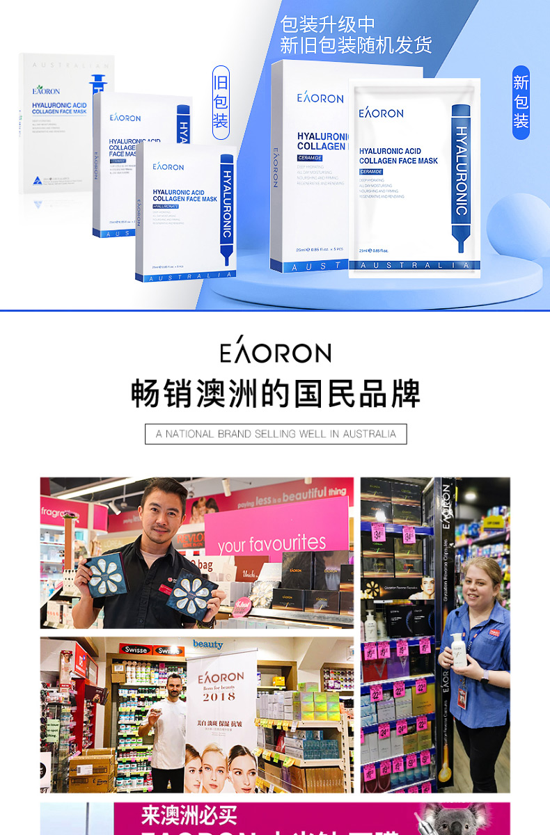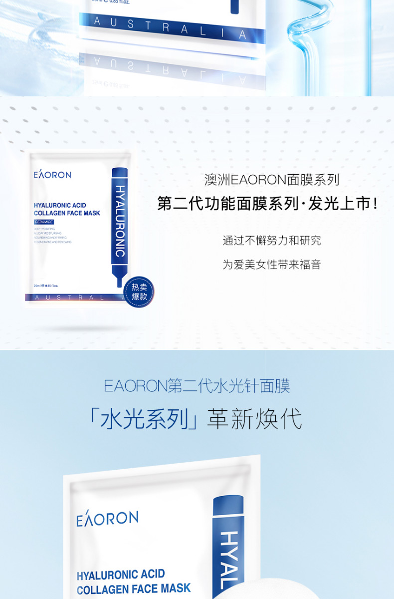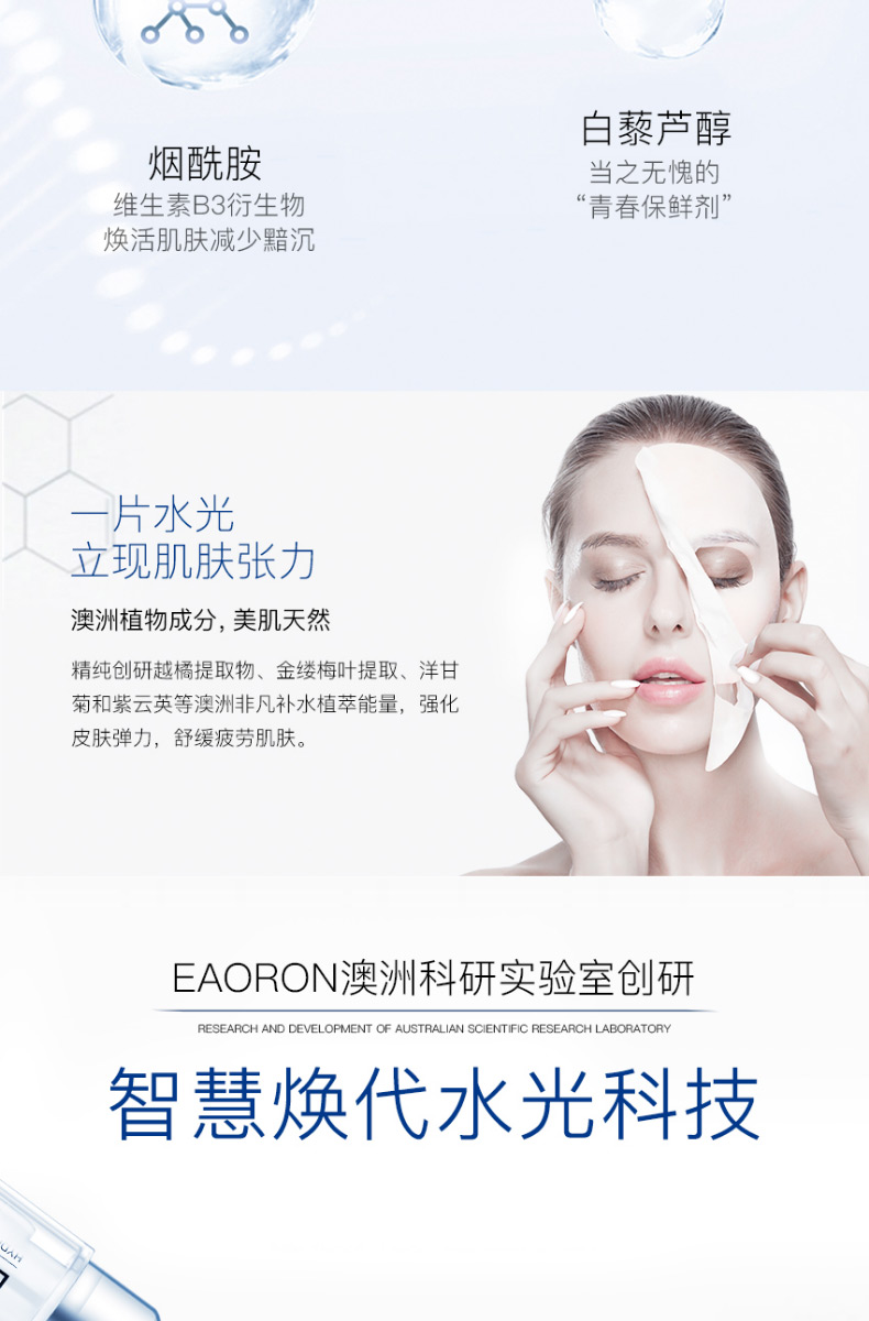 【限时特价】eaoron水光针黑面膜 补水保湿嫩白提亮肤色收缩毛孔 玻尿酸黑面膜一盒5片