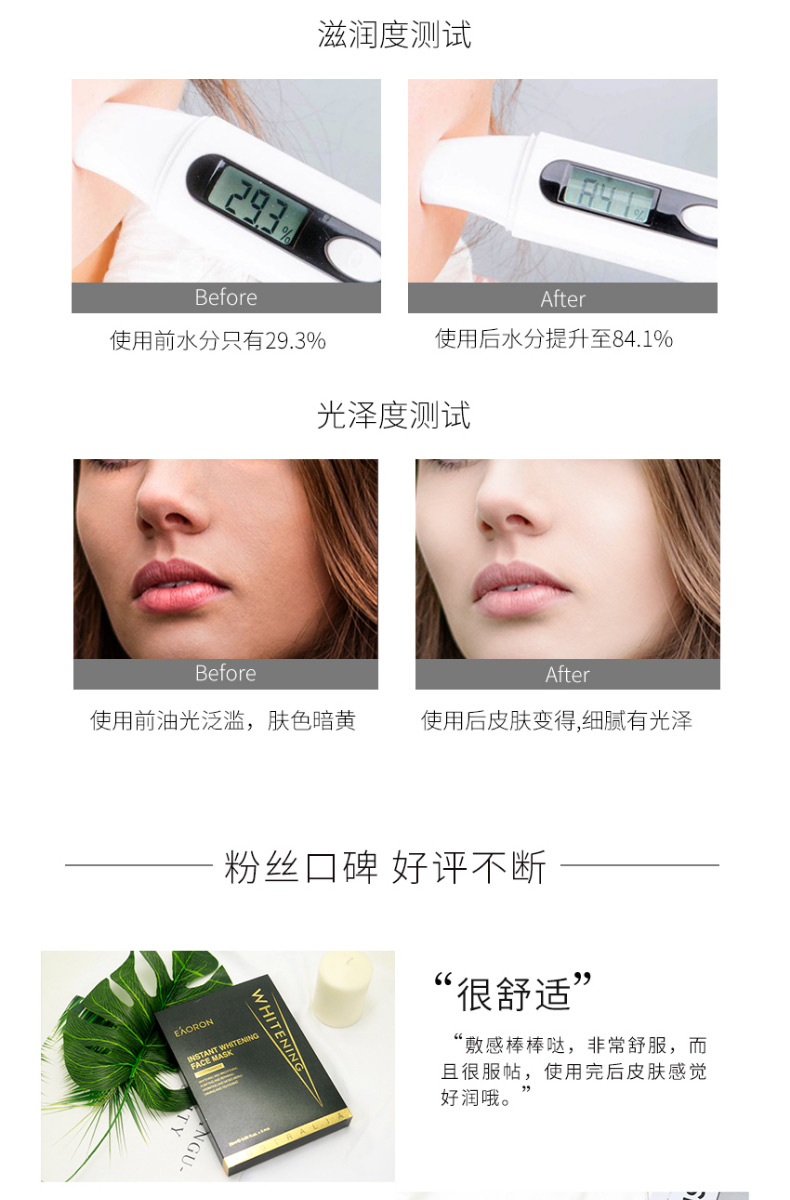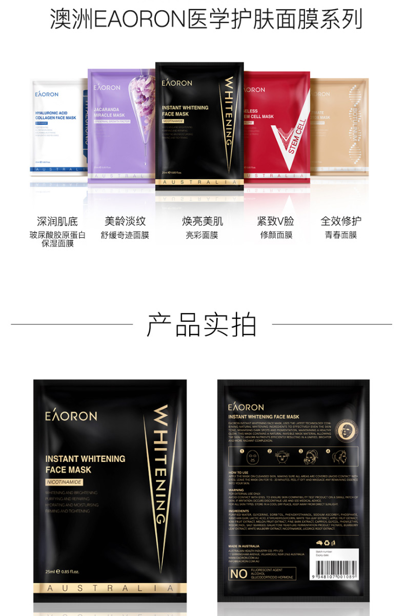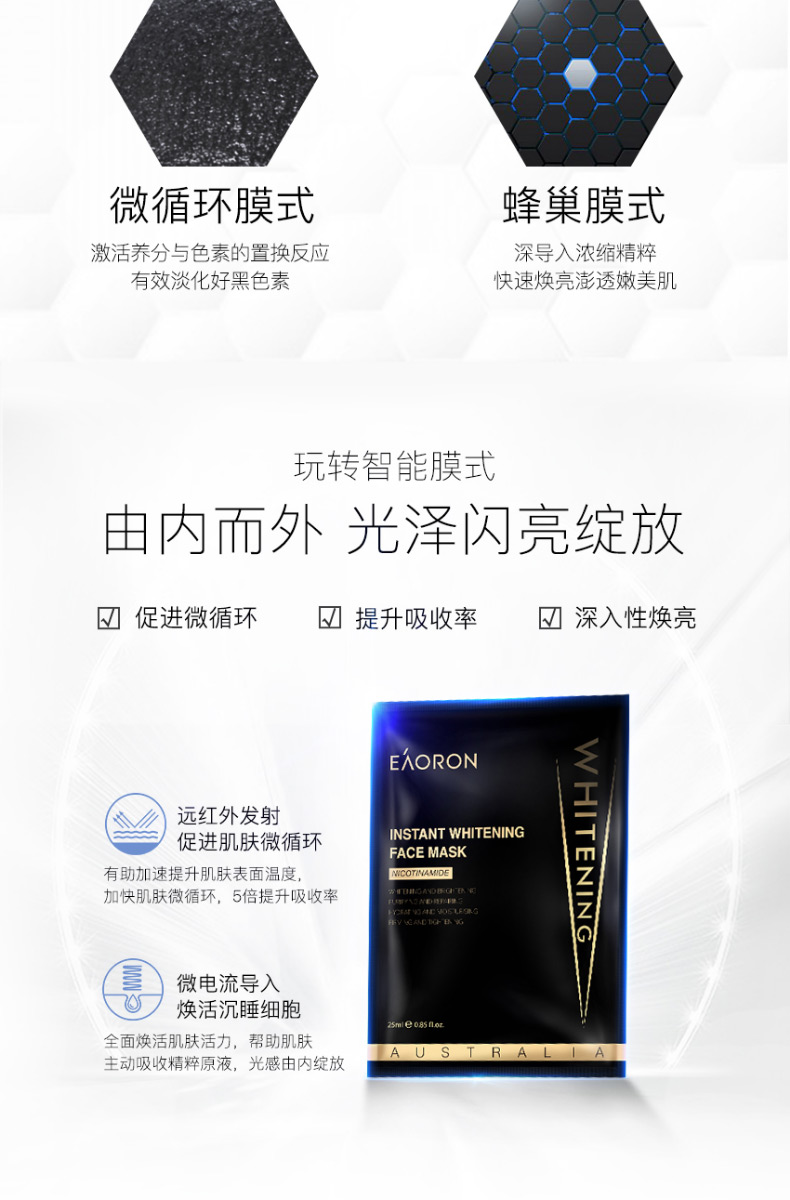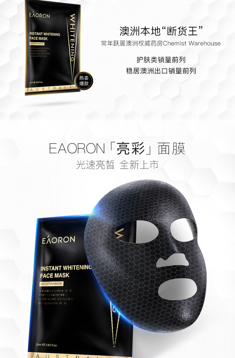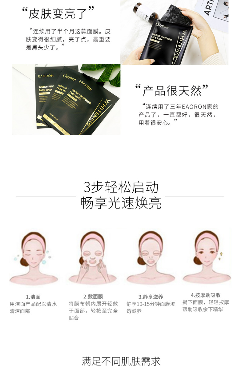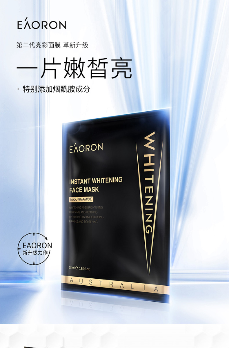 【限时特价】Eaoron水光针白面膜 补水保湿嫩白提亮肤色收缩毛孔 玻尿酸白面膜一盒5片
