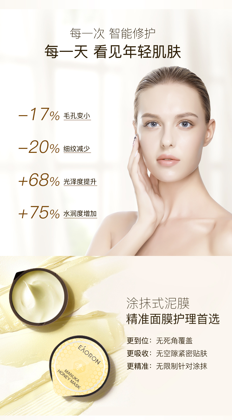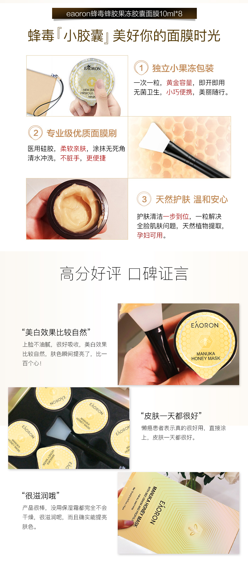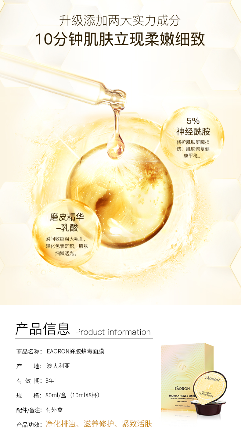 【限时特价】Eaoron水光针白面膜 补水保湿嫩白提亮肤色收缩毛孔 玻尿酸白面膜一盒5片