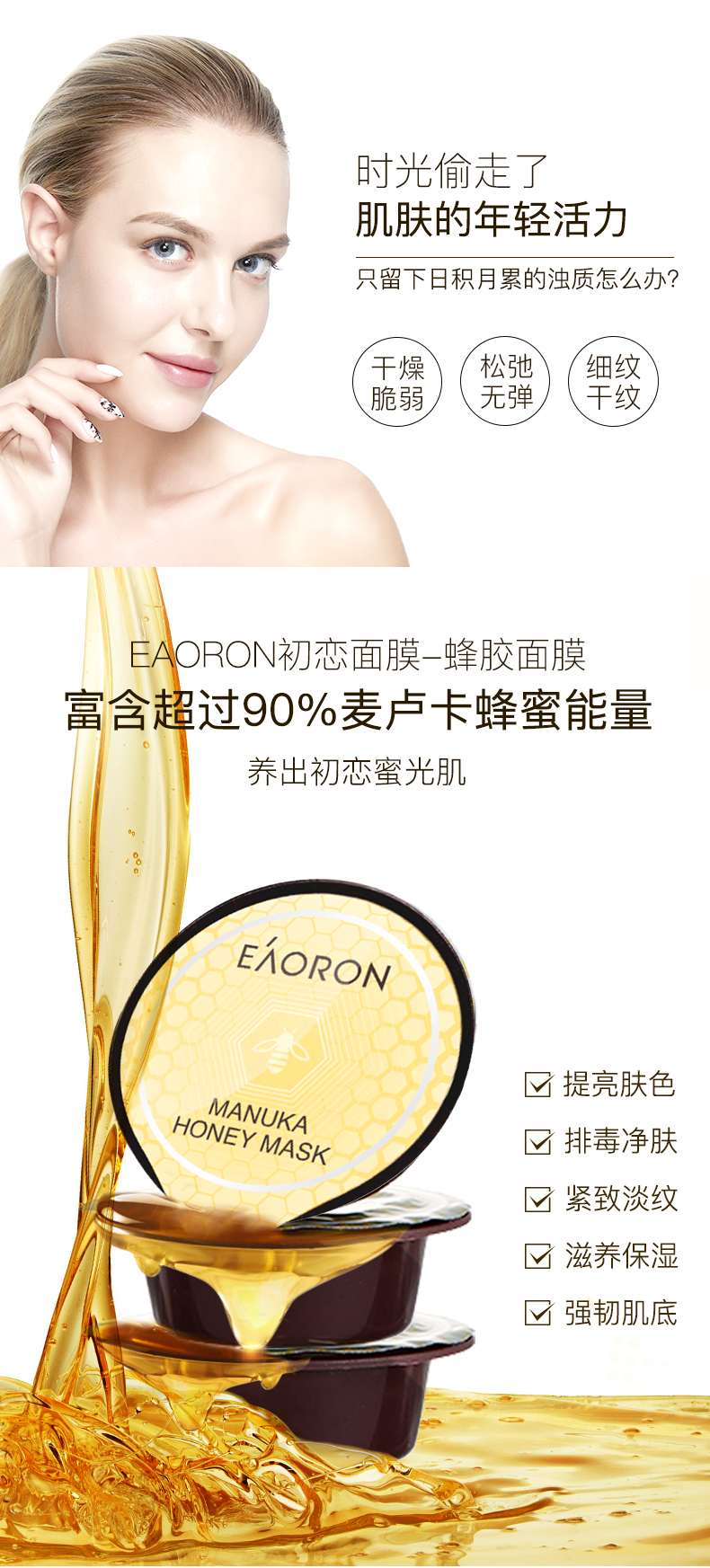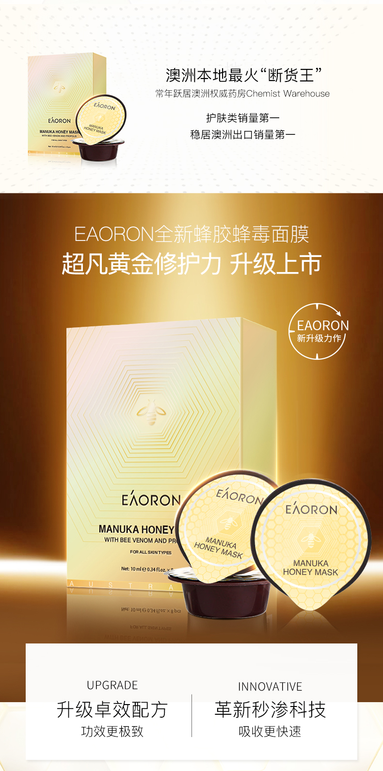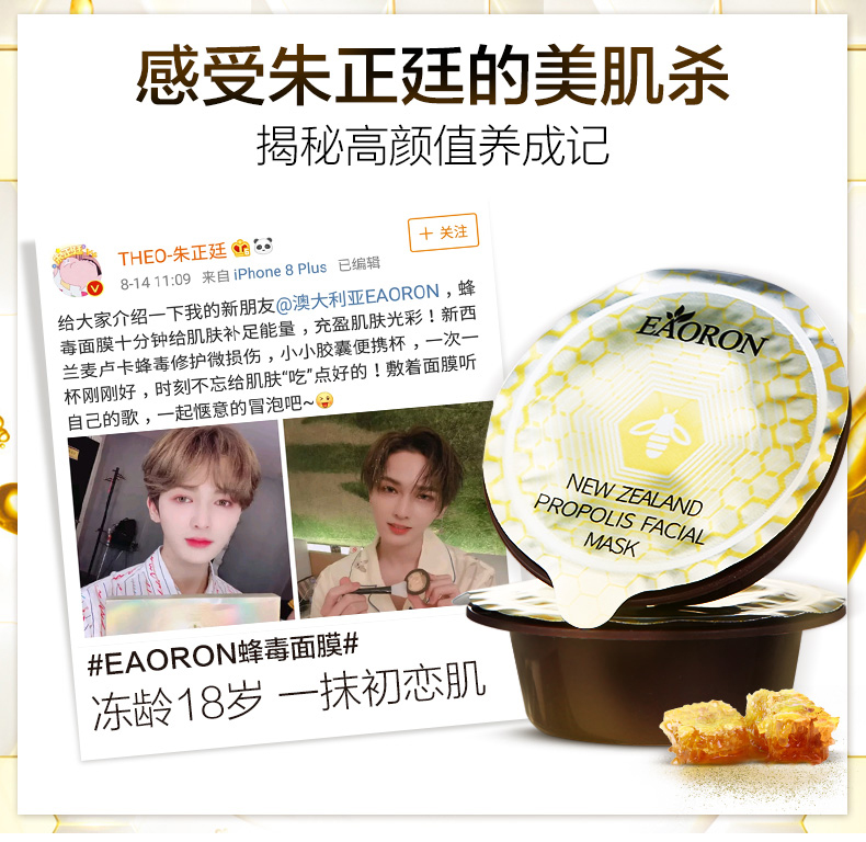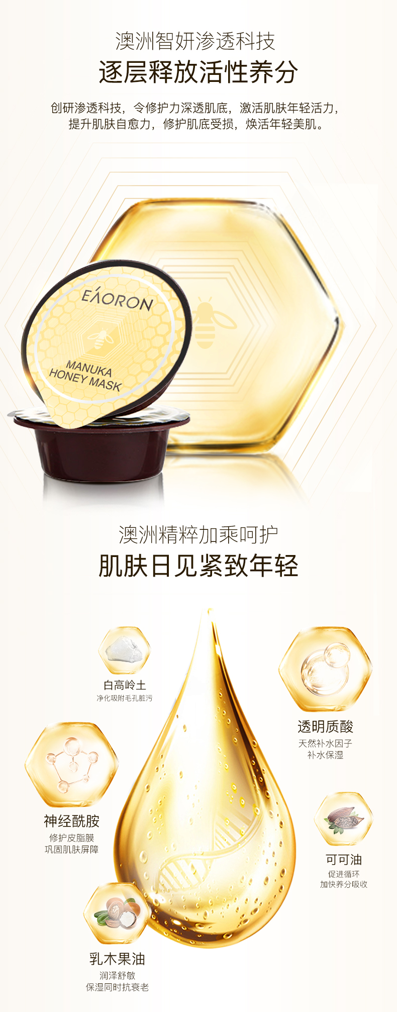 【限时特价】Eaoron水光针白面膜 补水保湿嫩白提亮肤色收缩毛孔 玻尿酸白面膜一盒5片