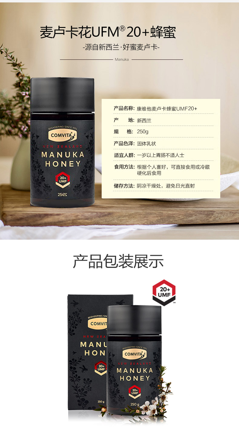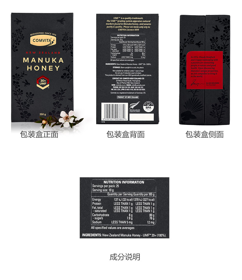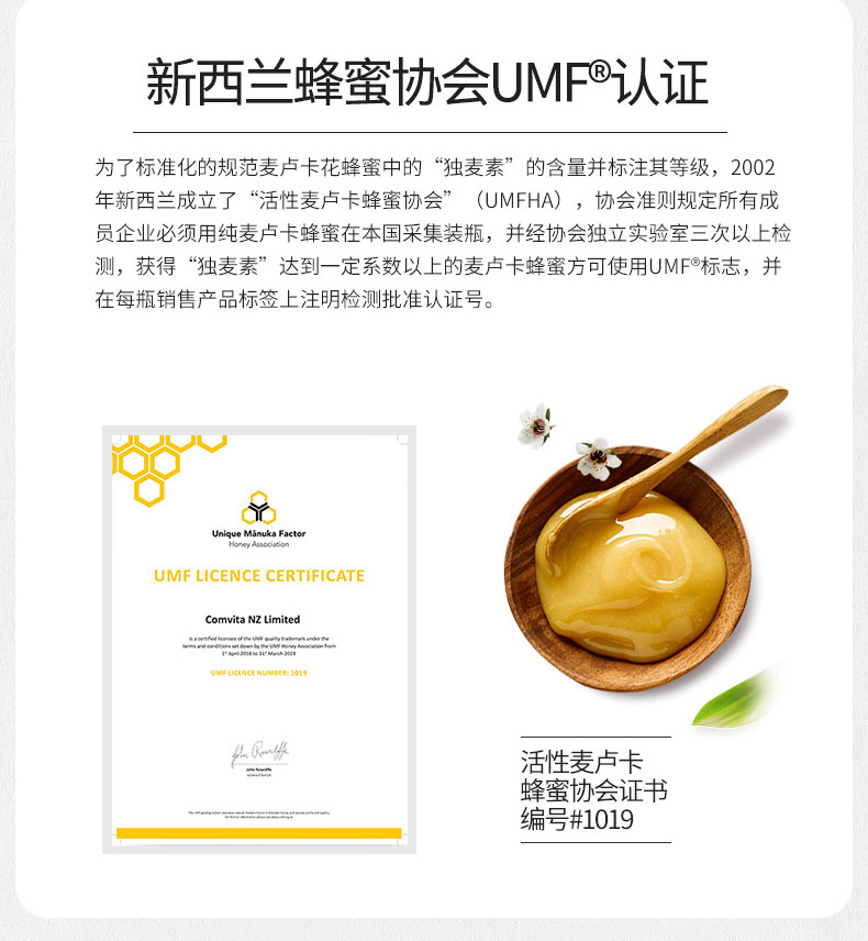 UMF5+ 新西兰comvita 康维他天然野生麦卢卡蜂蜜 1kg 新版