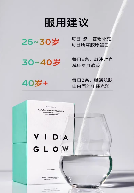 新包装Vida Glow 原味 水解深海鱼胶原蛋白肽粉90克*30包 一般贸易
