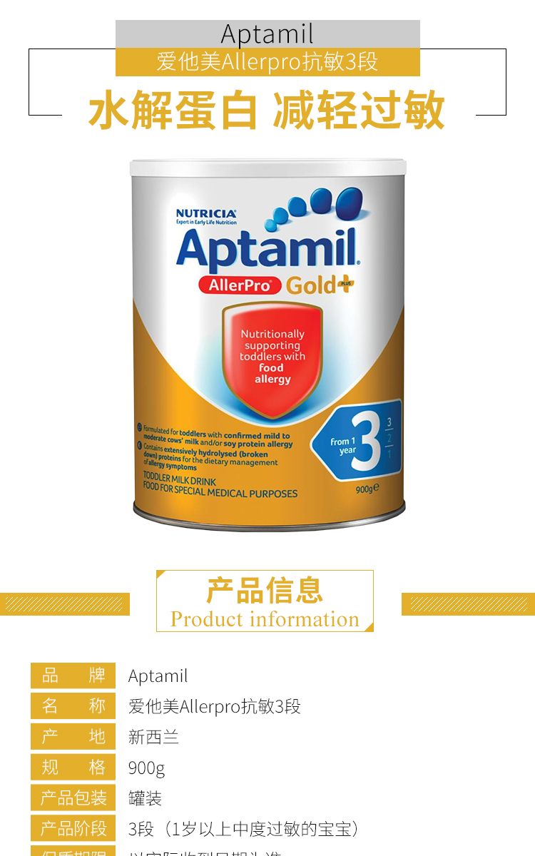 Aptamil爱他美AllerProsyneo 深度水解抗敏2段 900g