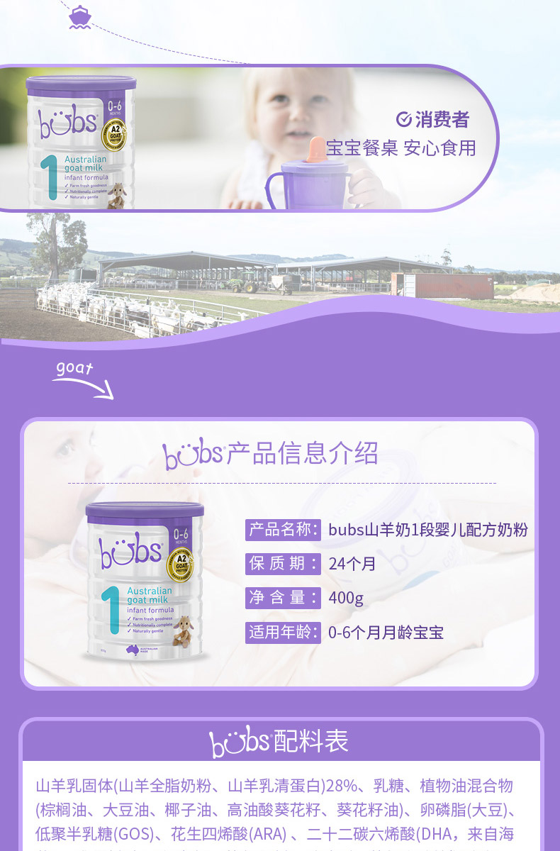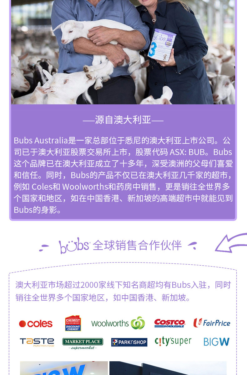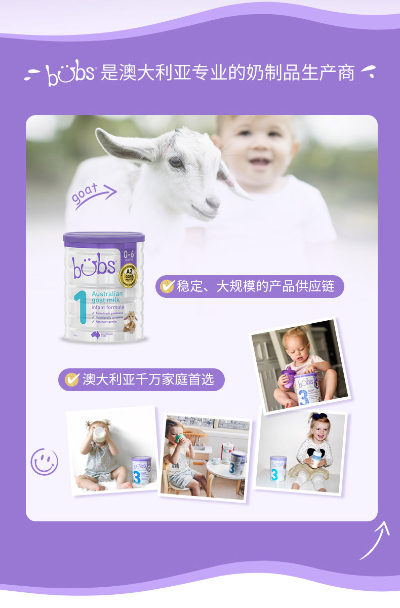 Bubs贝儿婴幼儿羊奶粉 三段 800g 新版 6罐极速发货包直邮