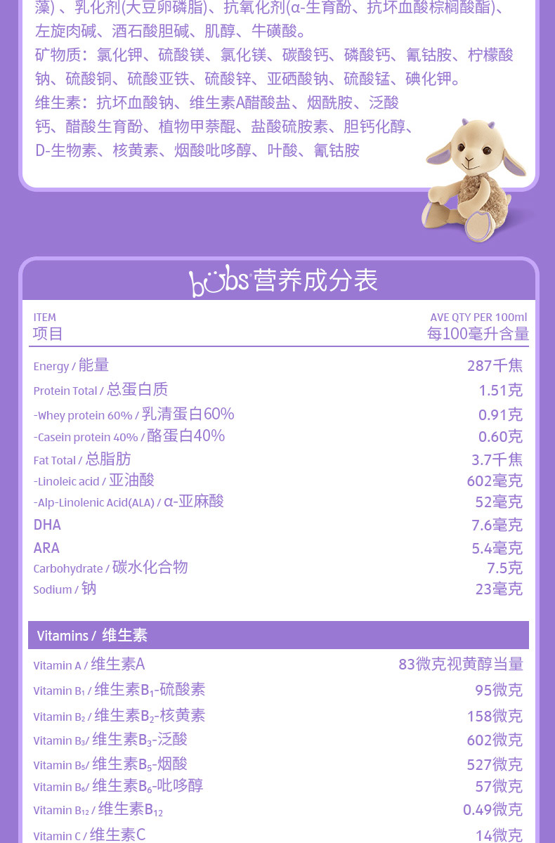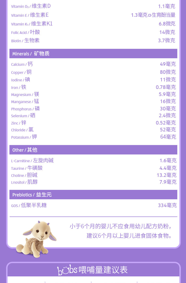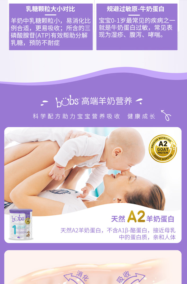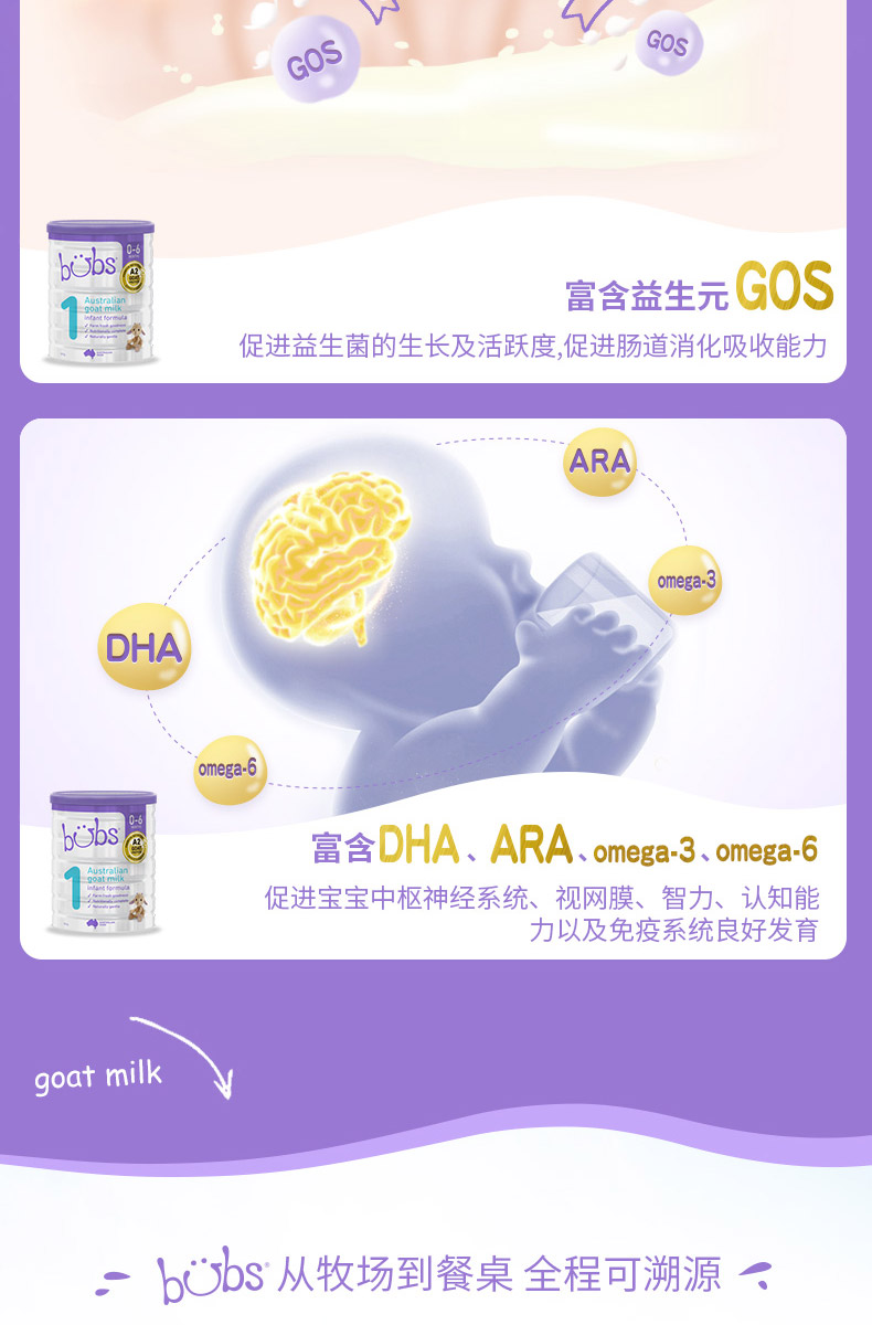 Bubs贝儿婴幼儿羊奶粉 三段 800g 新版 6罐极速发货包直邮