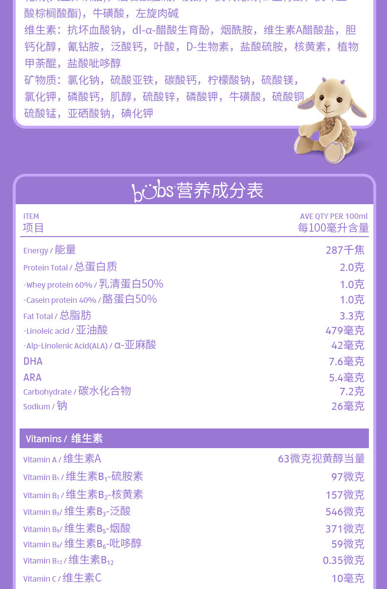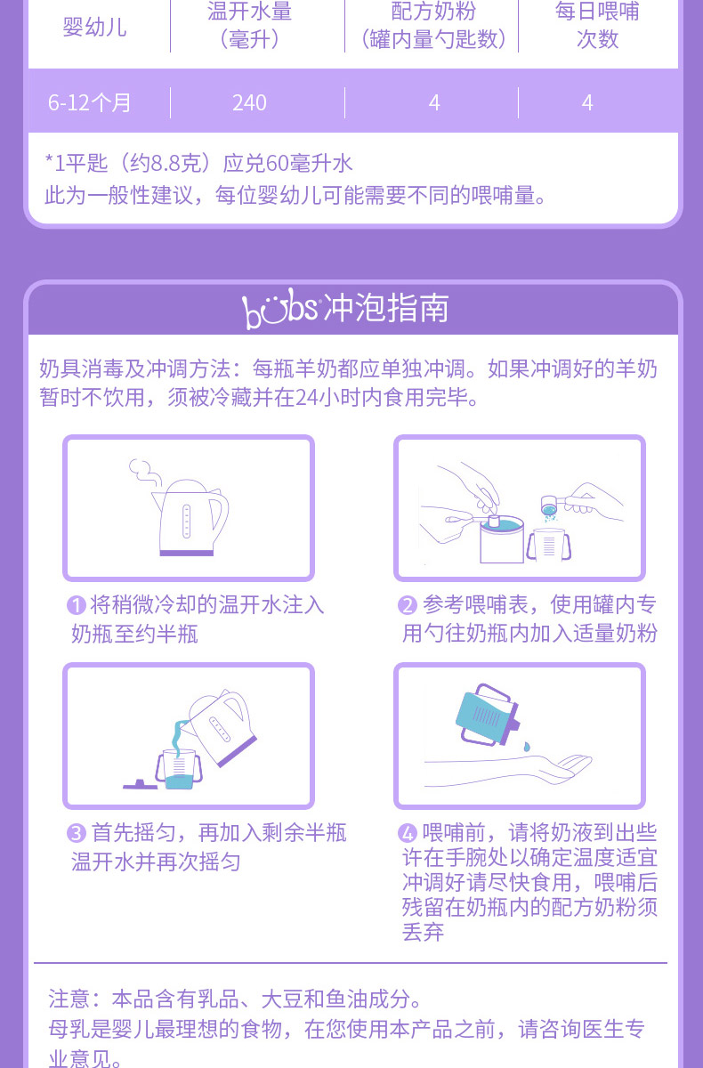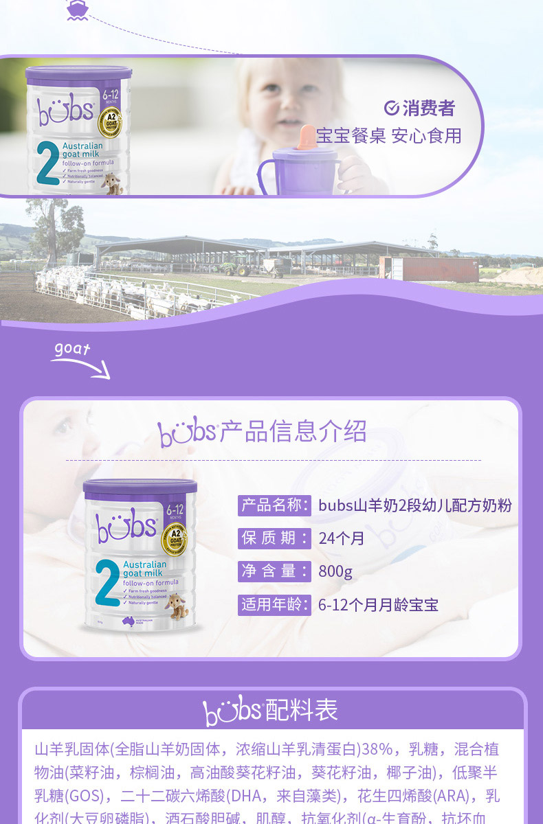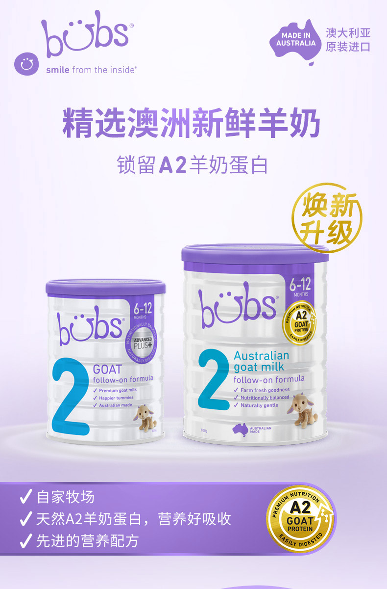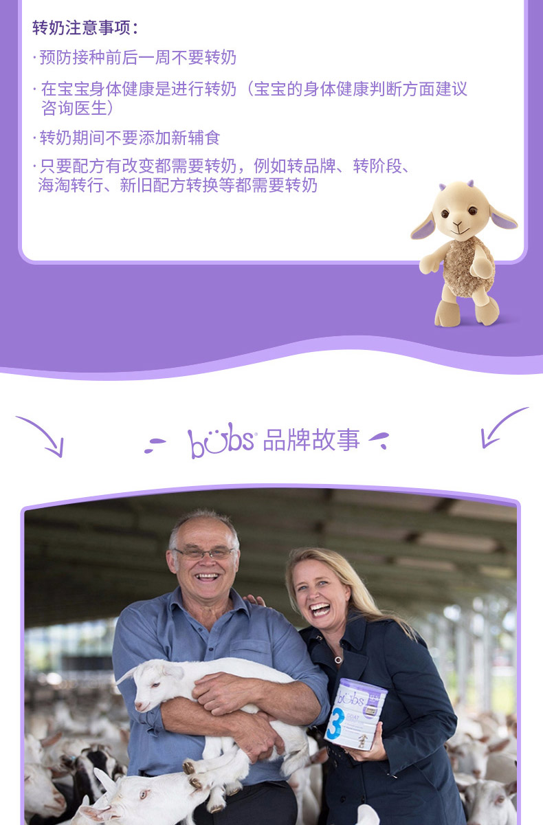 Bubs贝儿婴幼儿羊奶粉 三段 800g 新版 6罐极速发货包直邮