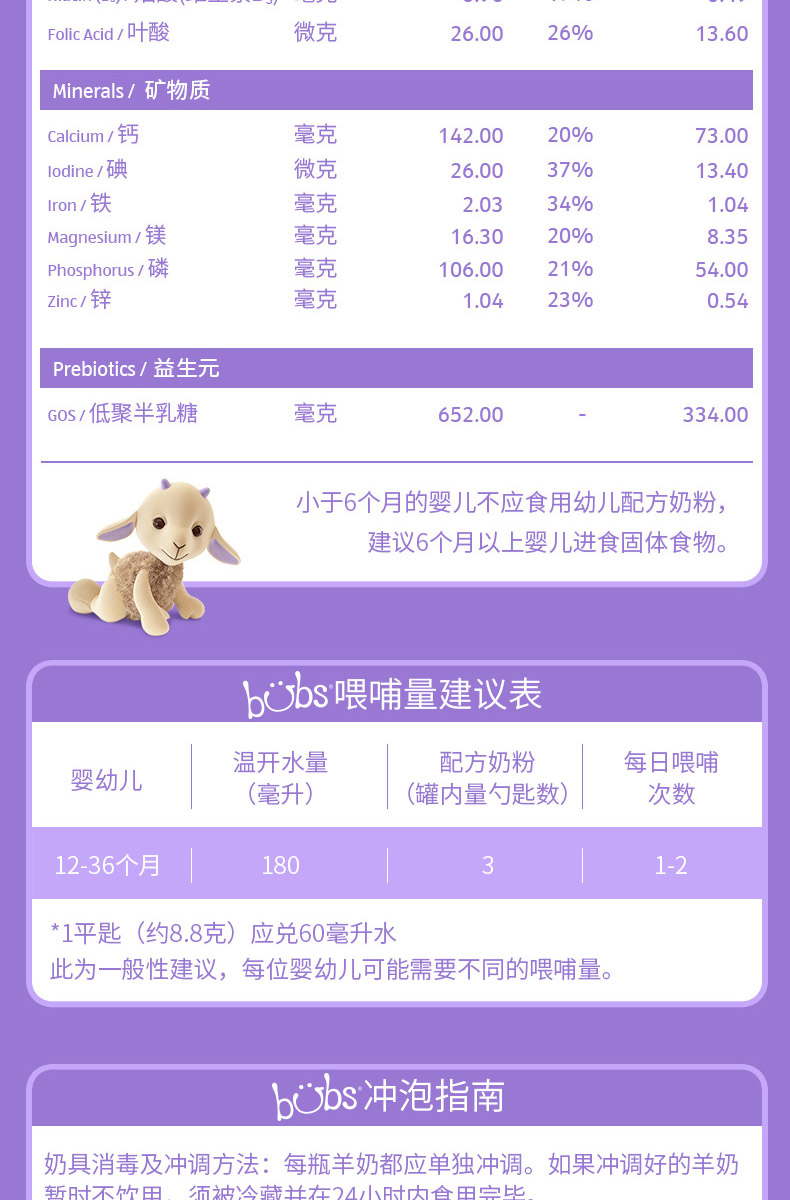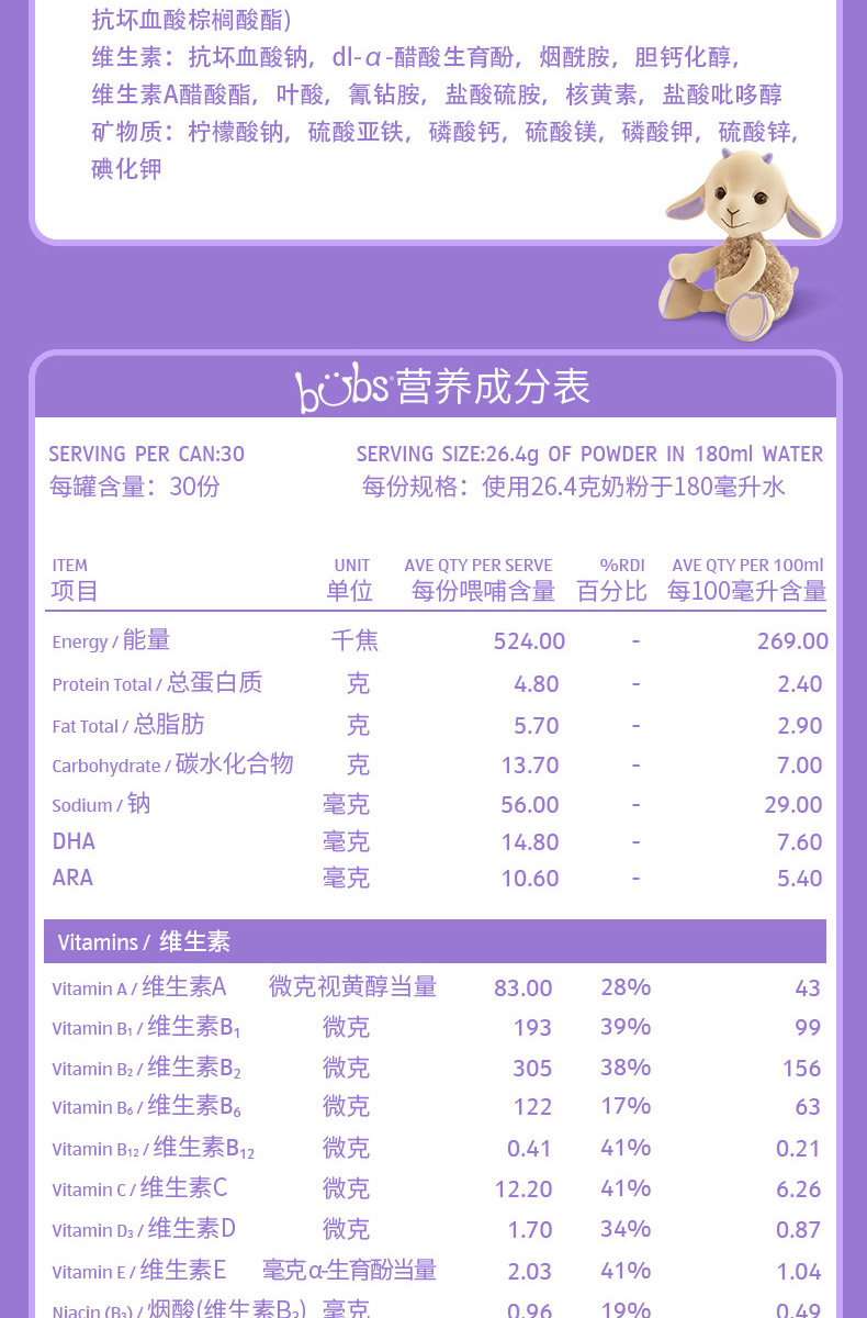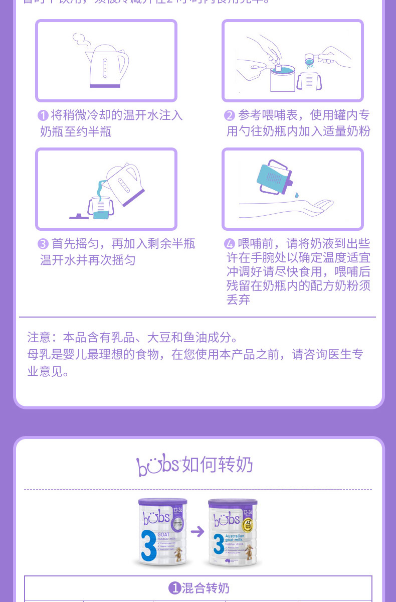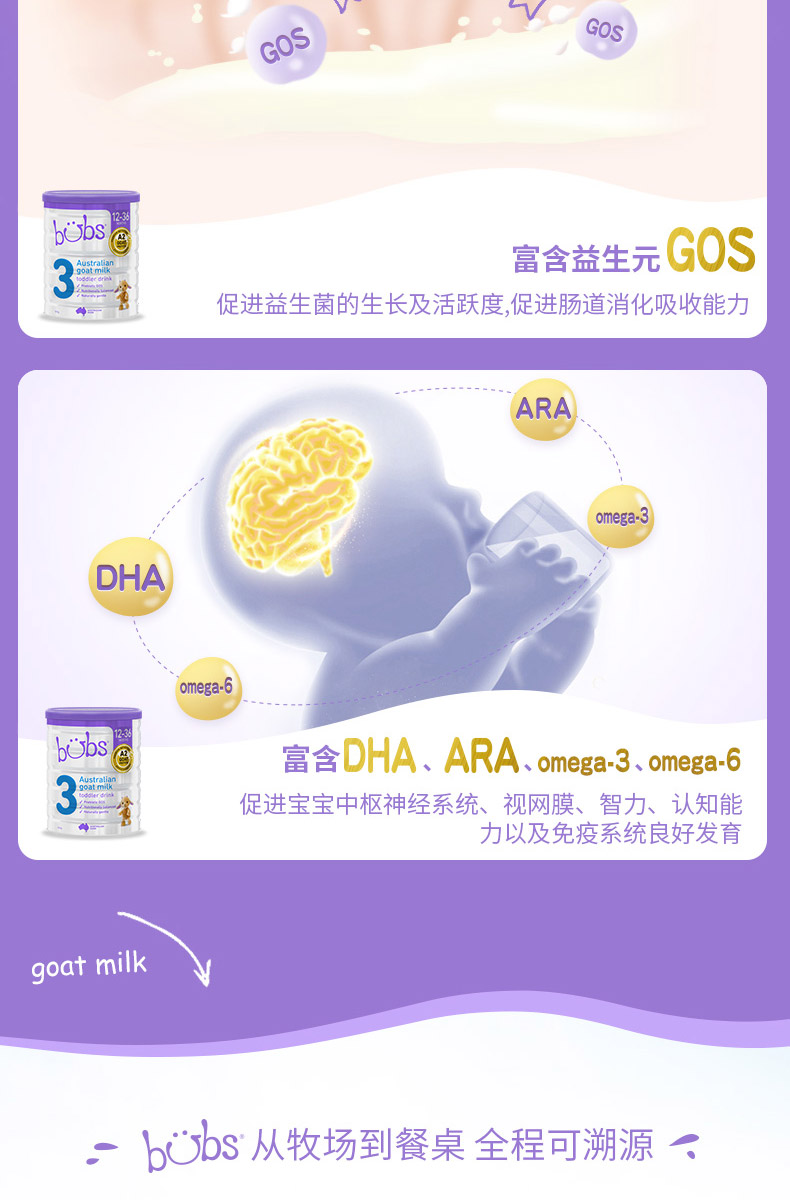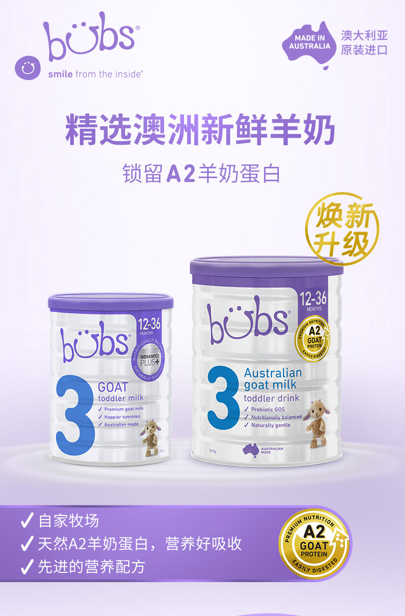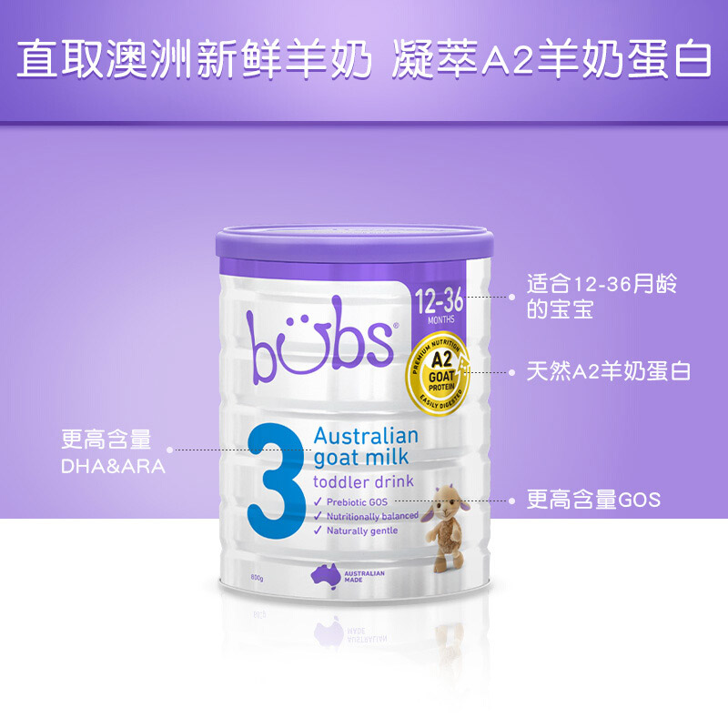 Bubs贝儿婴幼儿羊奶粉 二段 800g 新版 6罐极速发货包直邮