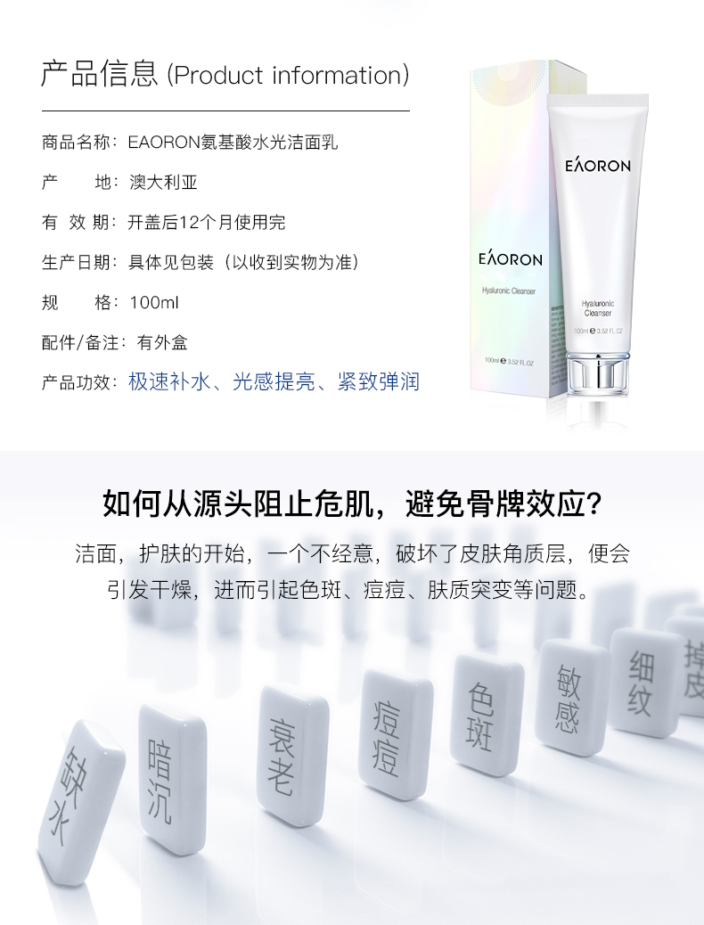 【限时特价】Eaoron水光针白面膜 补水保湿嫩白提亮肤色收缩毛孔 玻尿酸白面膜一盒5片