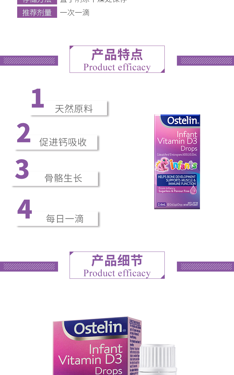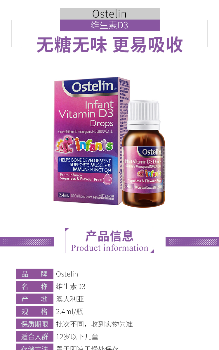 Ostelin婴幼儿vd滴剂 维生素D补钙滴液草莓味20ml 新版(6个月以上)