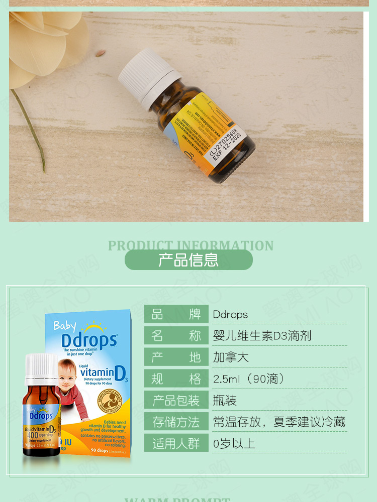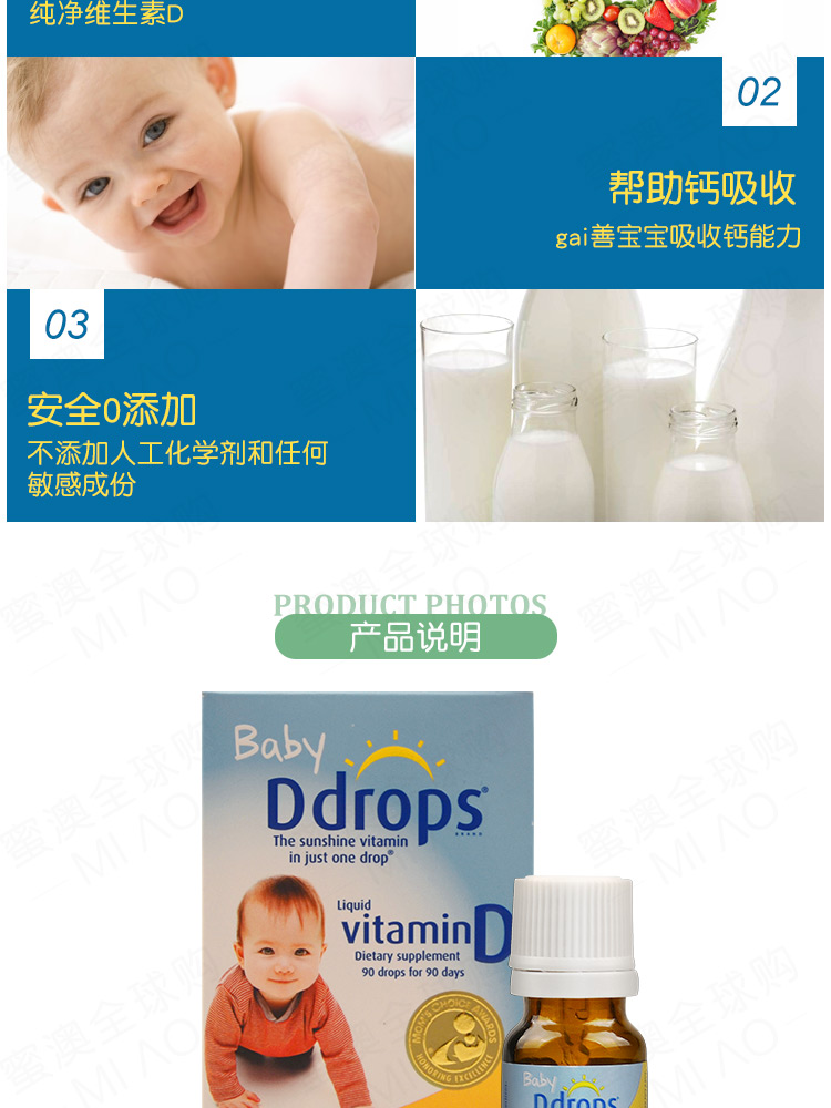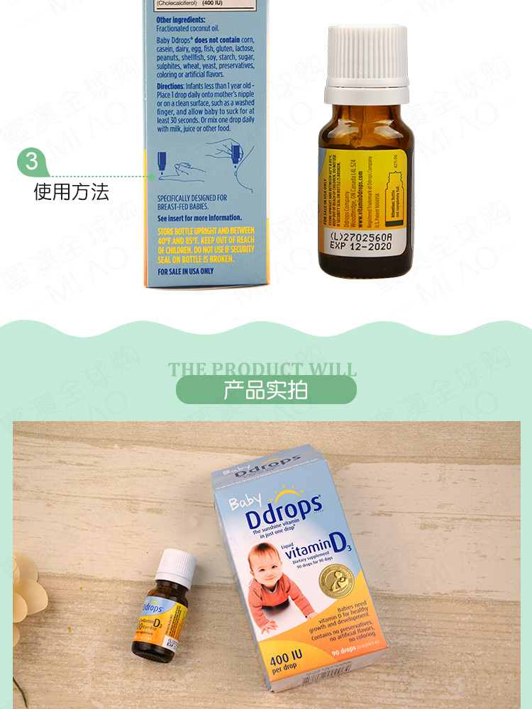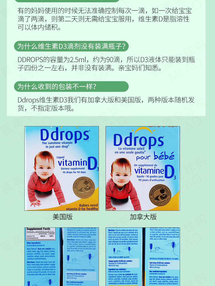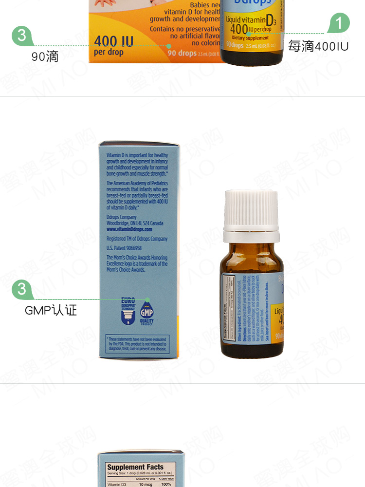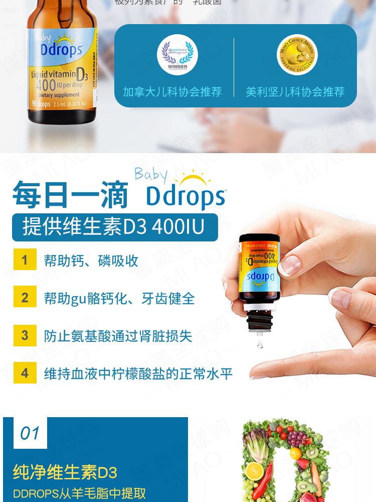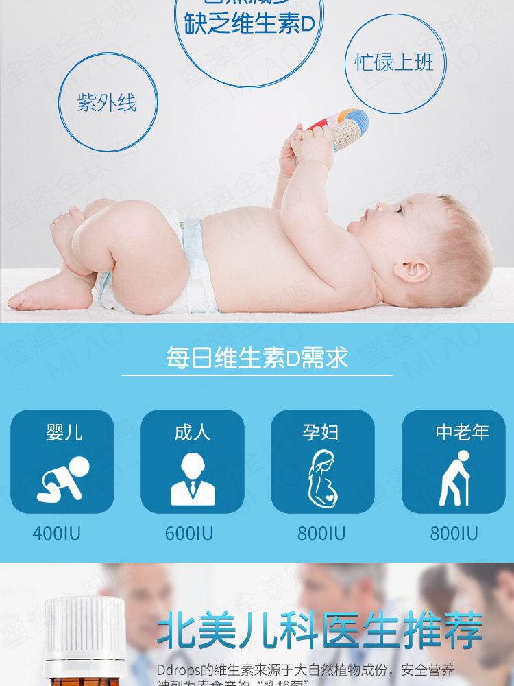 当前位置: 首页 > 母婴用品 > 宝宝健康 > 美国Baby ddrops婴儿维生素D3 宝宝补钙滴剂400IU 2.5ml 90滴
