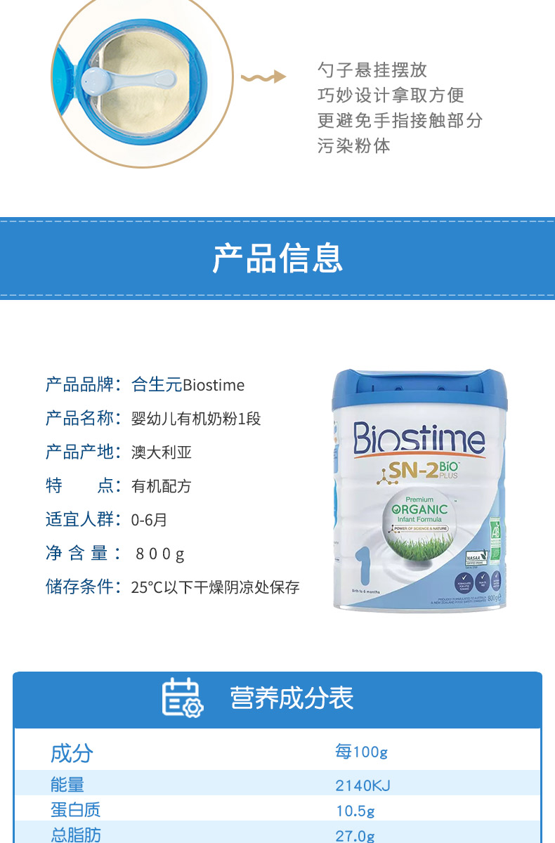 澳洲 Biostime法国原产合生元婴幼儿奶粉国际版 二段 800g