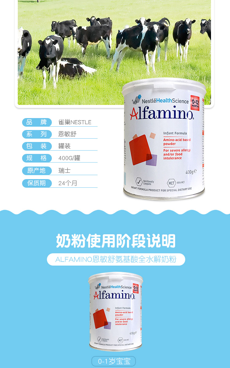 雀巢 Alfamino 恩敏舒氨基酸全水解奶粉 重度过敏 400g