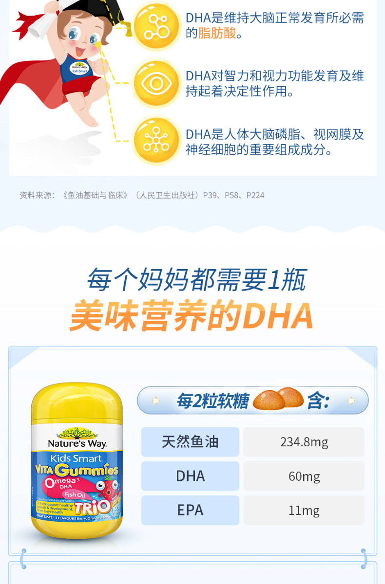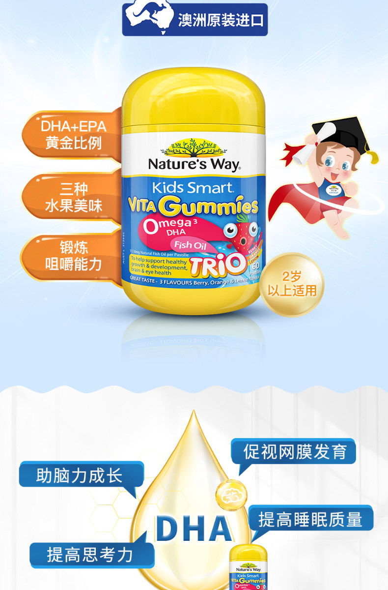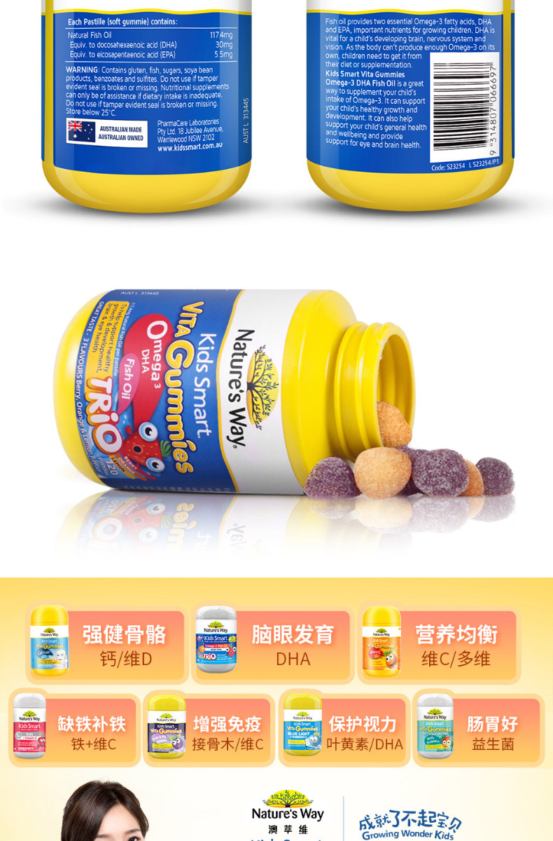 Nature's way佳思敏软糖 儿童VD+钙软糖 宝宝补钙片促钙吸收 60粒