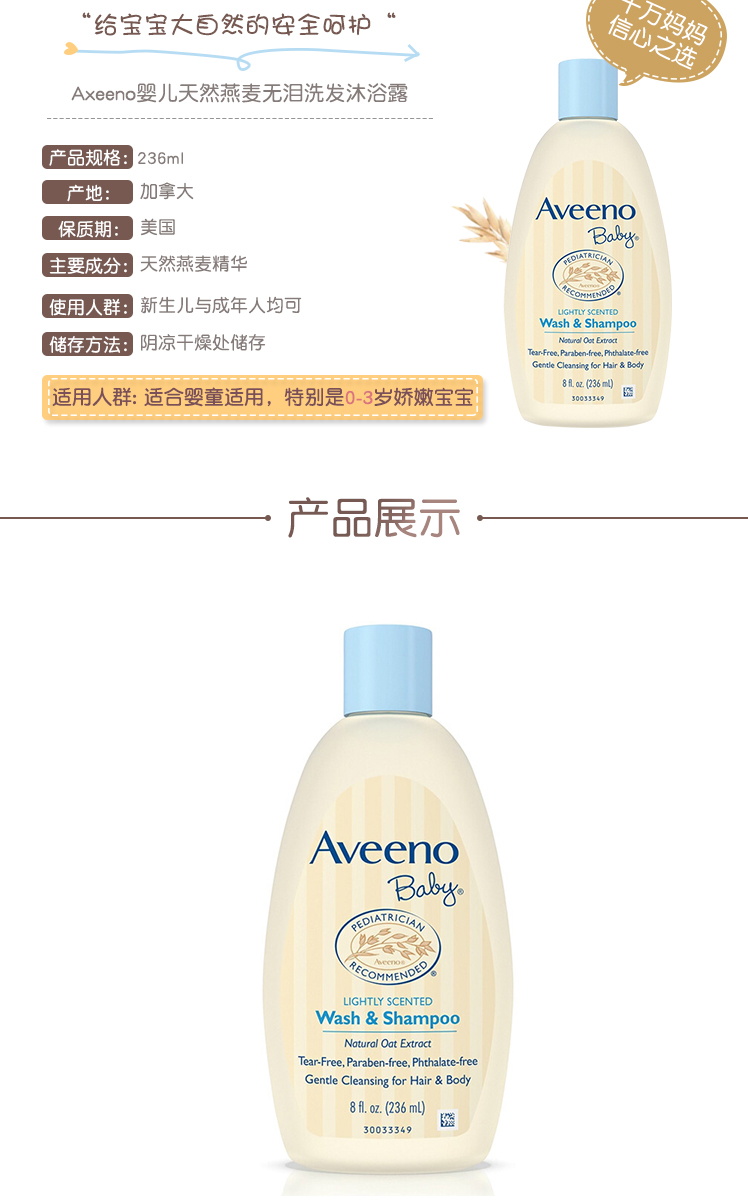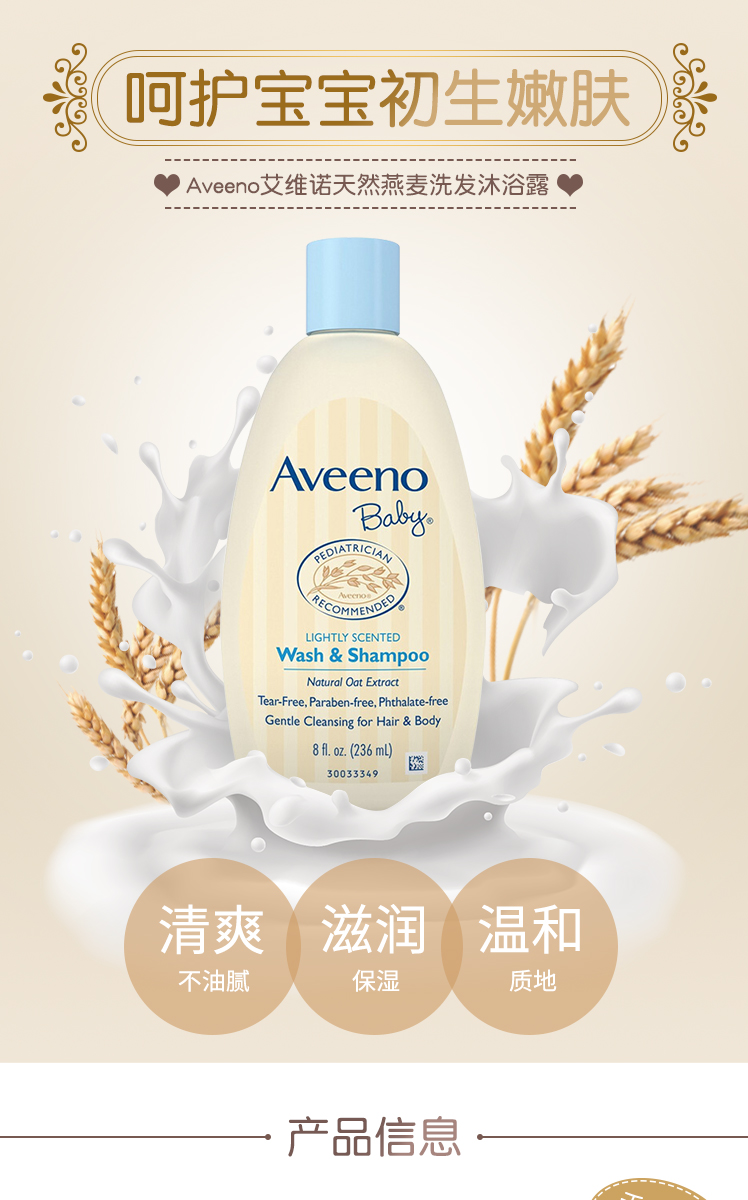 Aveeno艾维诺儿童面霜滋润润肤保湿全身春夏季补水新生婴幼儿宝宝身体乳 227ml